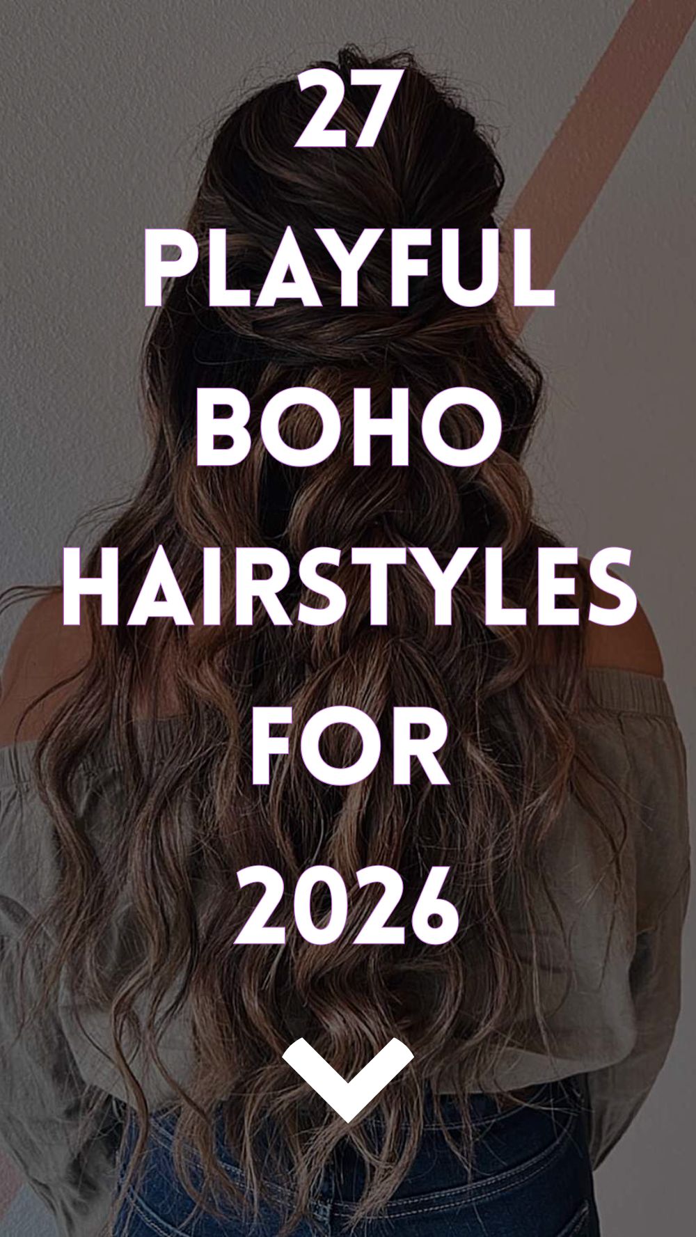 Consider boho hippie chic hairstyles for your next event. Boho half-up half-down hairstyles would be perfect for the summer bride. Style down with long beachy waves and braids and embellish with loose garland or a flower crown.