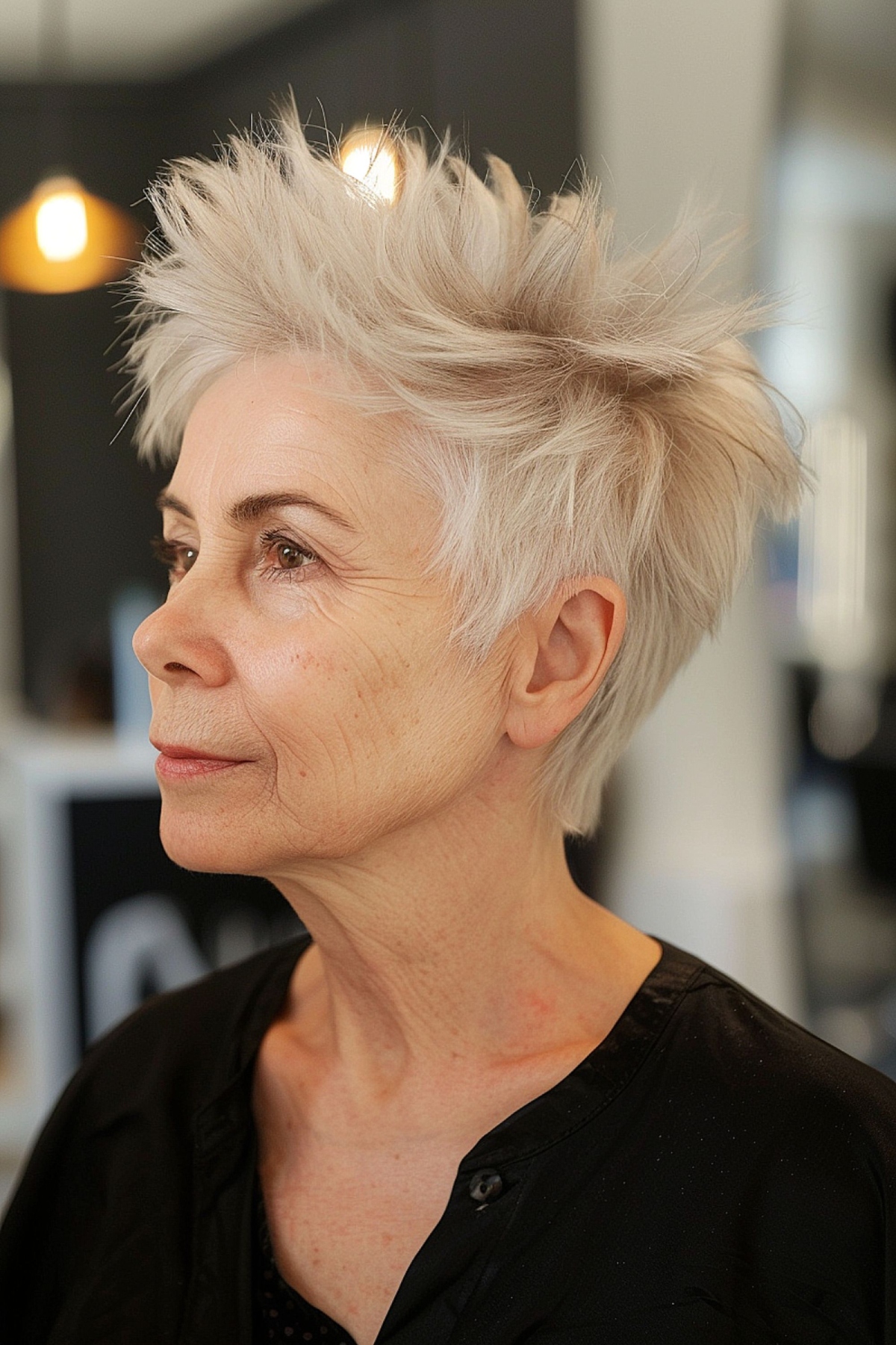 Check out these trendy short, spiky haircuts for women over 60 to spark inspiration before your next salon visit.