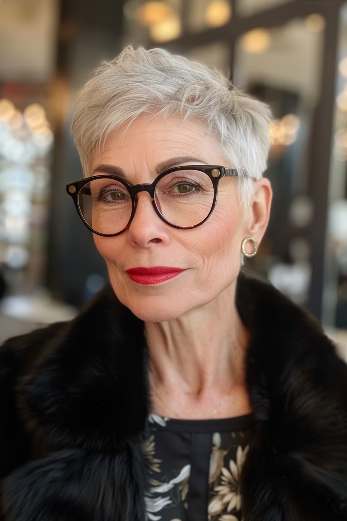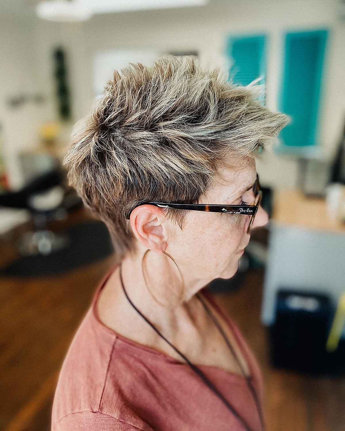 Timeless Spiked Pixie Hairstyle for Women with Glasses