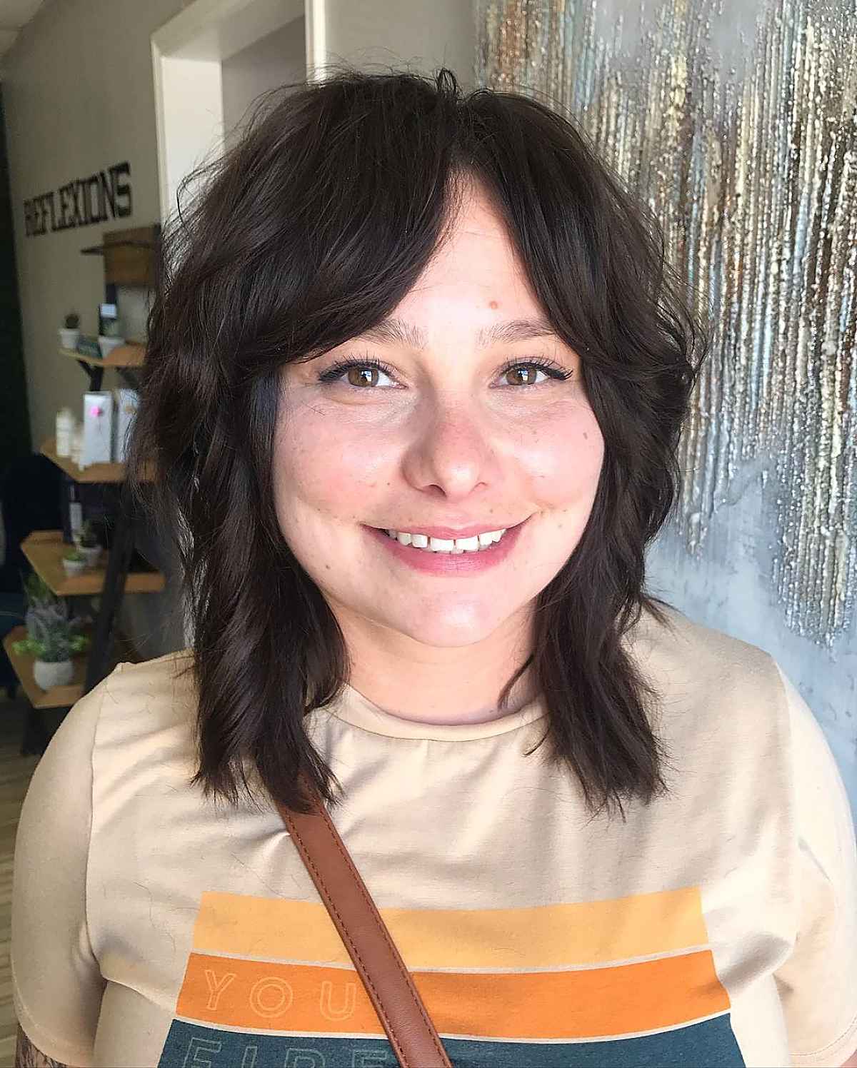 Shoulder-Length Shag with Side-Swept Bangs