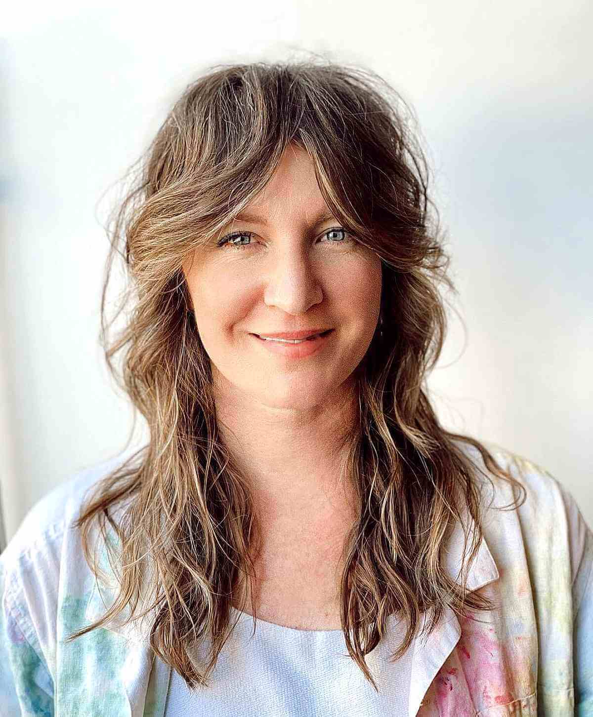 Chic Medium-Length Shag with Side-Parted Bangs for Women Over 50