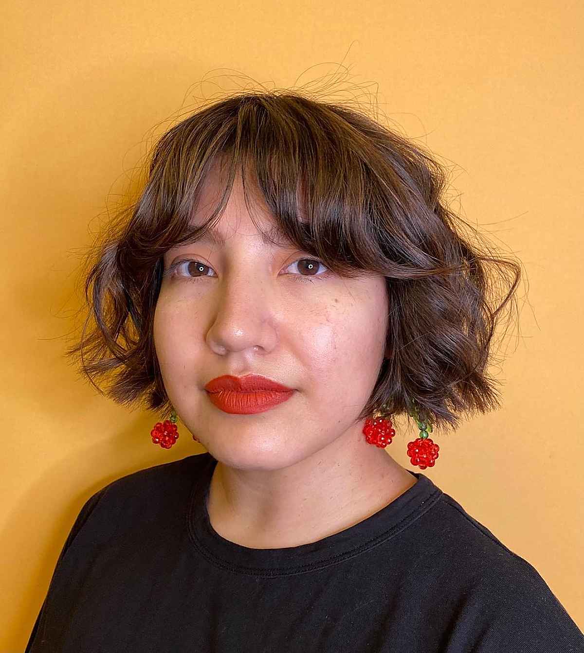 Gentle Curtain Fringe on a Short Bob Cut
