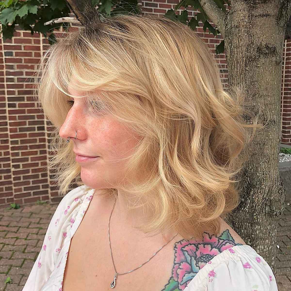 Textured Wavy Asymmetrical Style with Soft Bangs