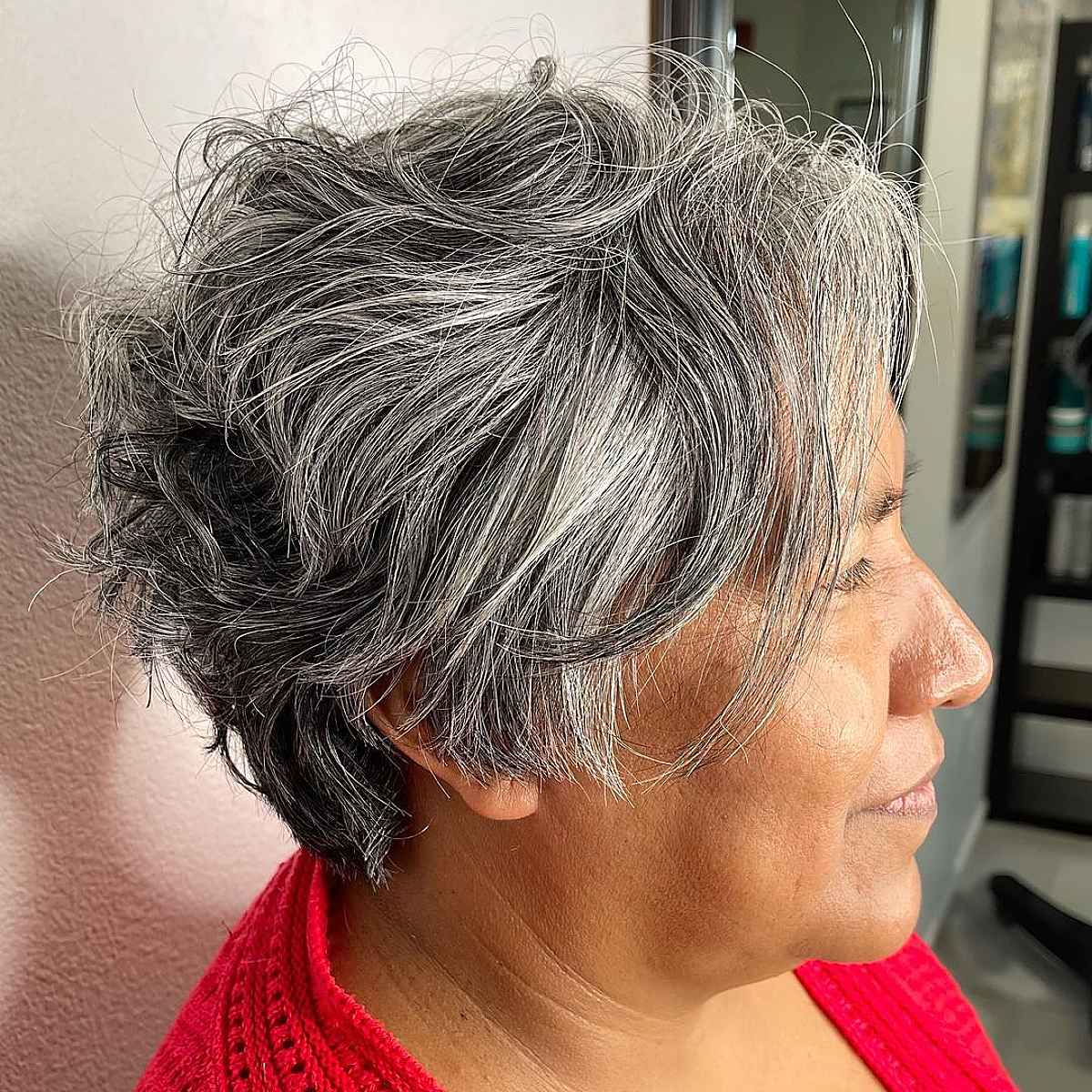 Stylish Wavy Pixie Cut with Extended Bangs for Women Over 60