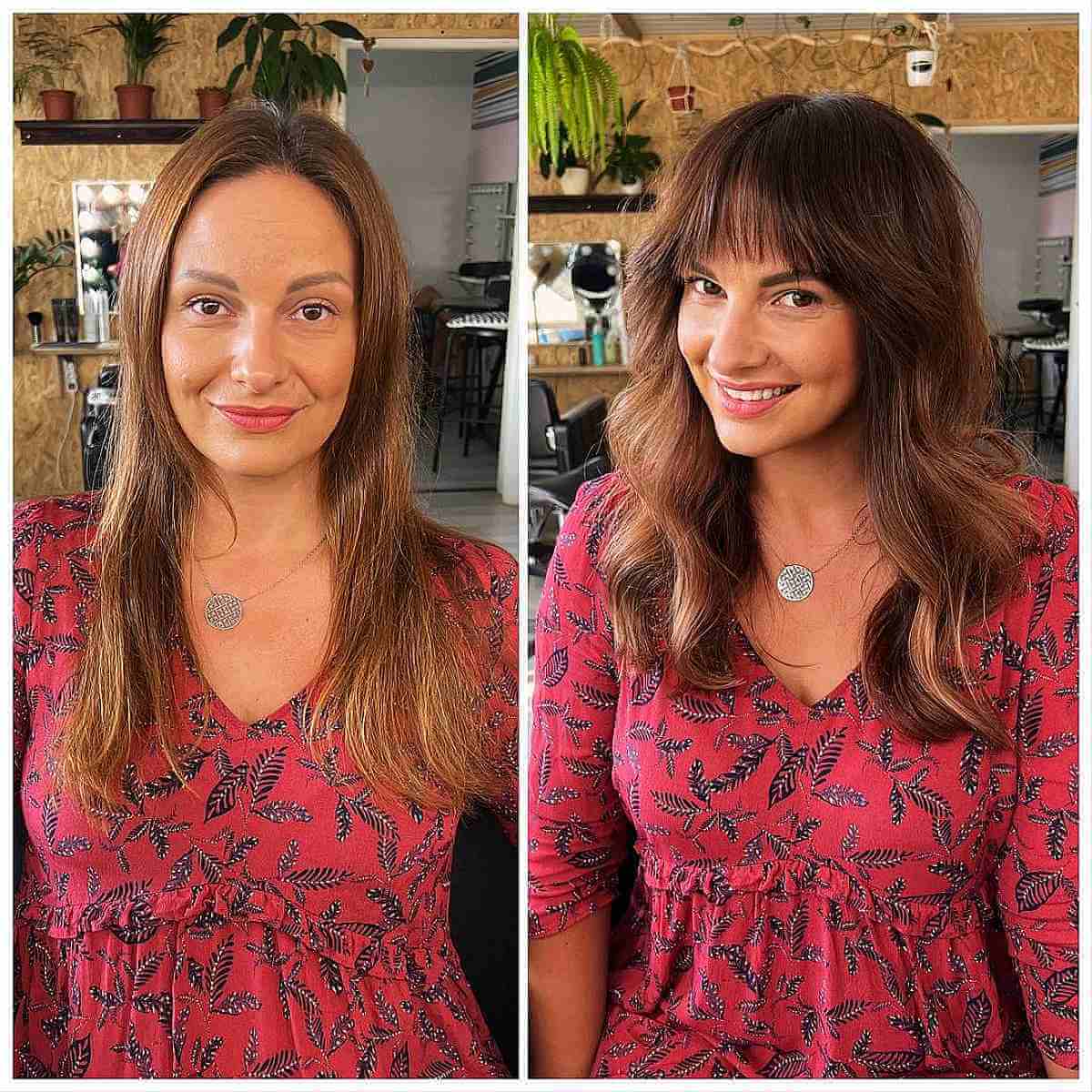Luxurious Brunette Locks with Flowing Fringe