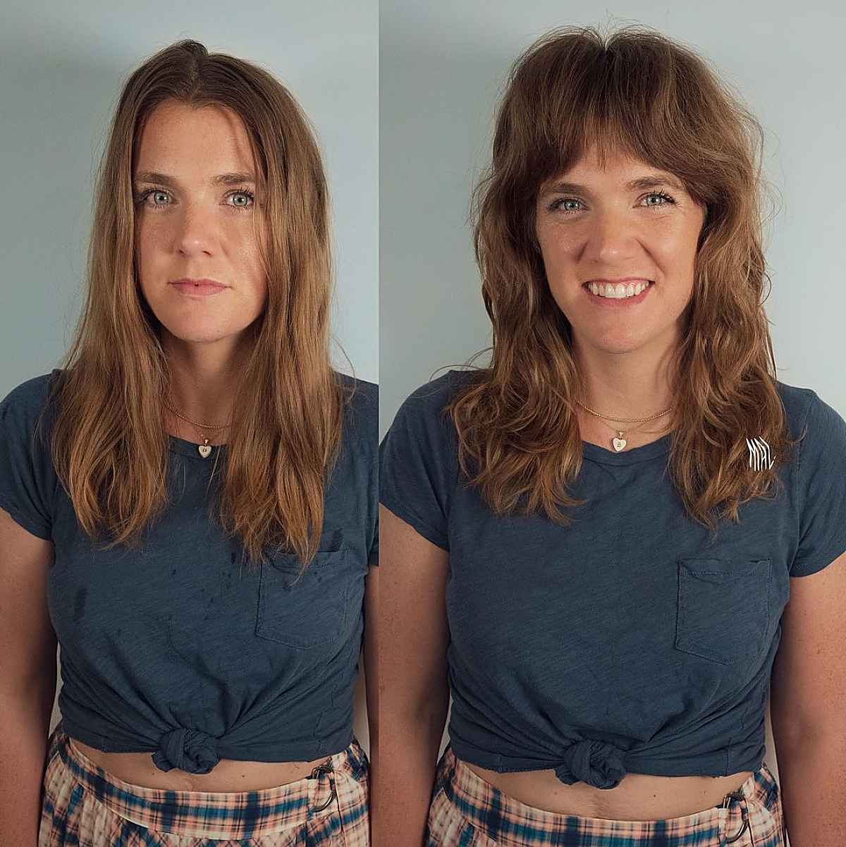 Chic Effortless Shaggy Hair with Curtain Bangs