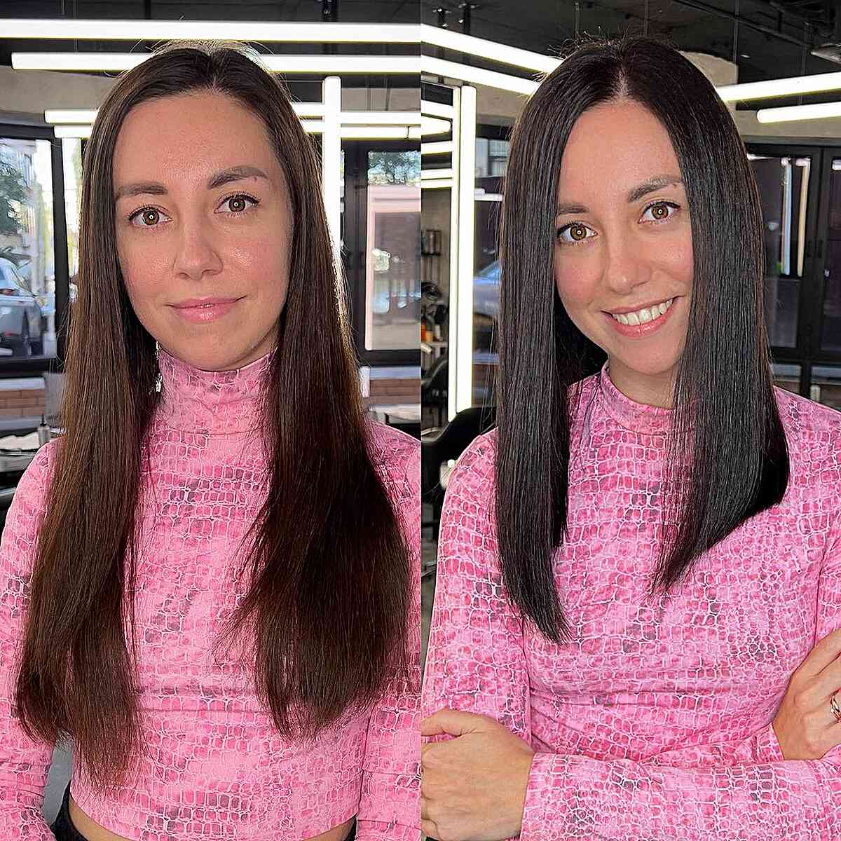 Sleek Long Bob Featuring a Center Part