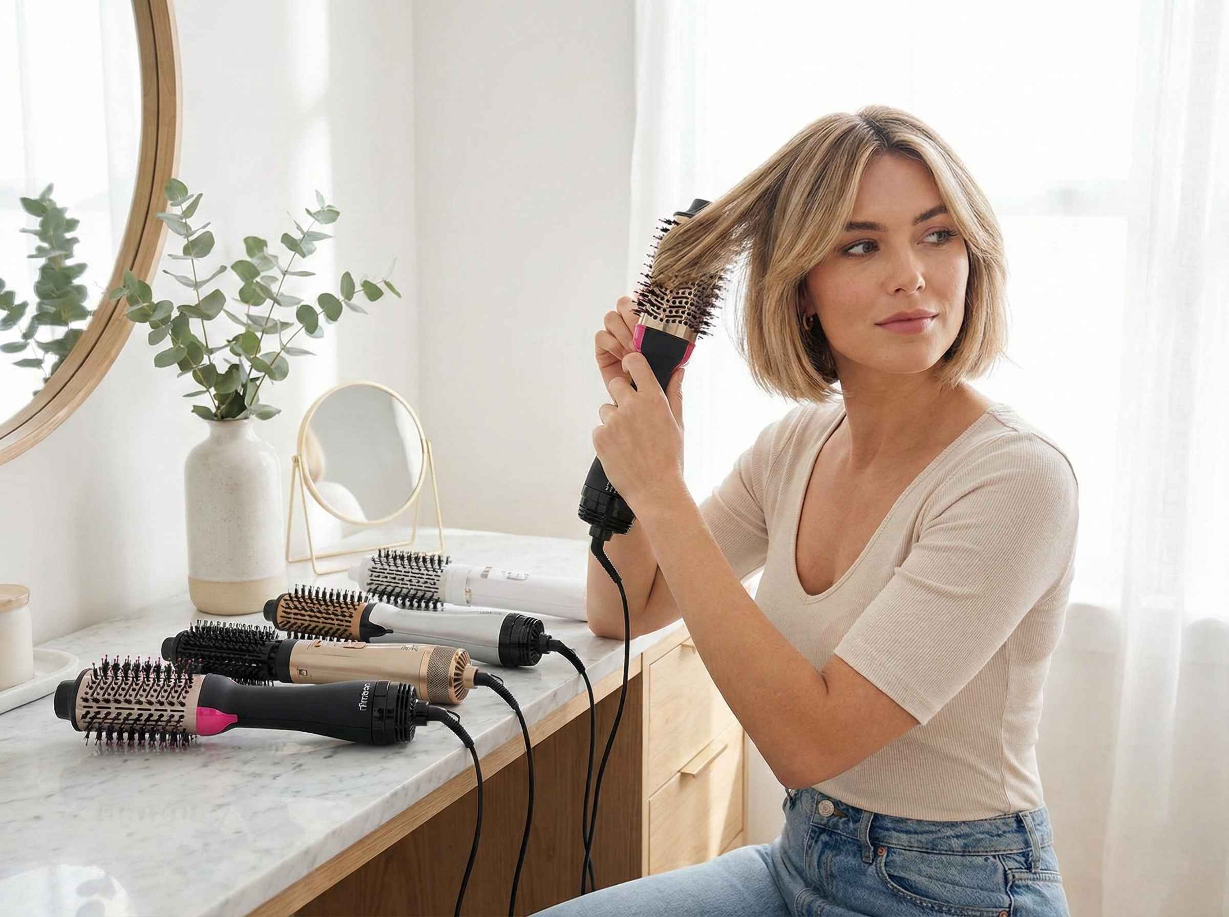 Hot air brushes work particularly well for short bobs because they can reach all sections of hair easily and create volume at the roots without the awkward angles that come from using separate brushes and dryers. The rotating or stationary barrel allows you to shape your hair while drying it, giving you lift where you want it and sleekness where you need it. Most models heat up quickly and reduce styling time compared to traditional methods.