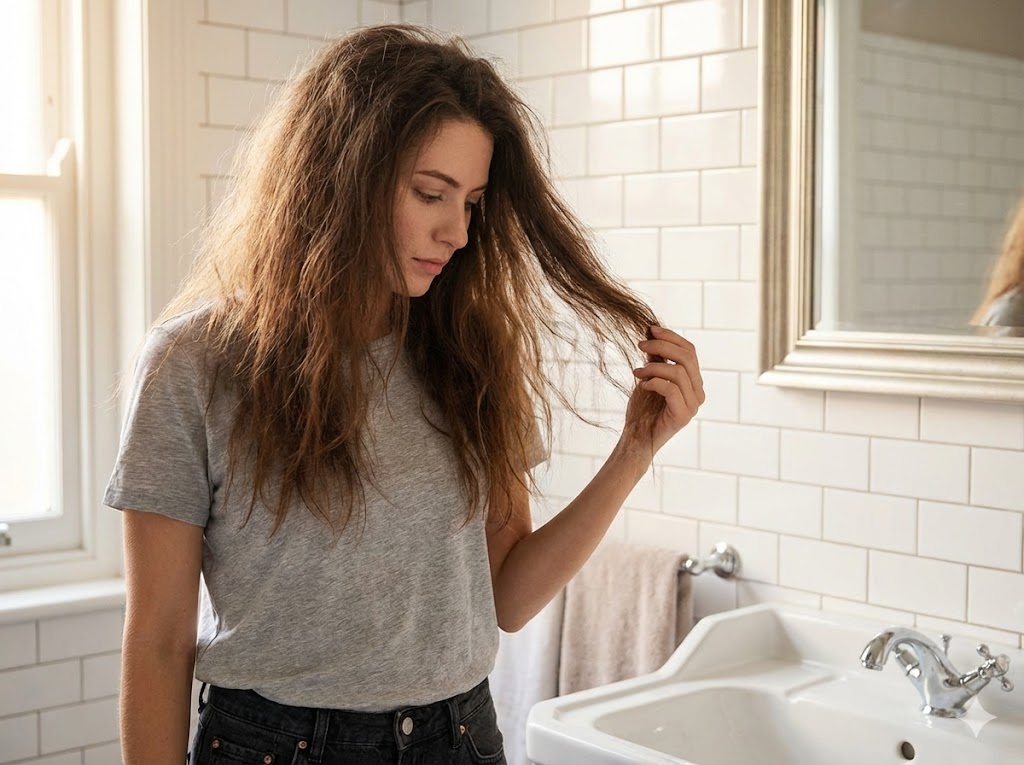 When hair is damaged, the cuticle layers lift and no longer lie flat, so light scatters instead of reflecting smoothly. The result: hair looks dull and feels coarse. I noticed my curls lost definition and my straight strands went frizzy because moisture balance broke down.