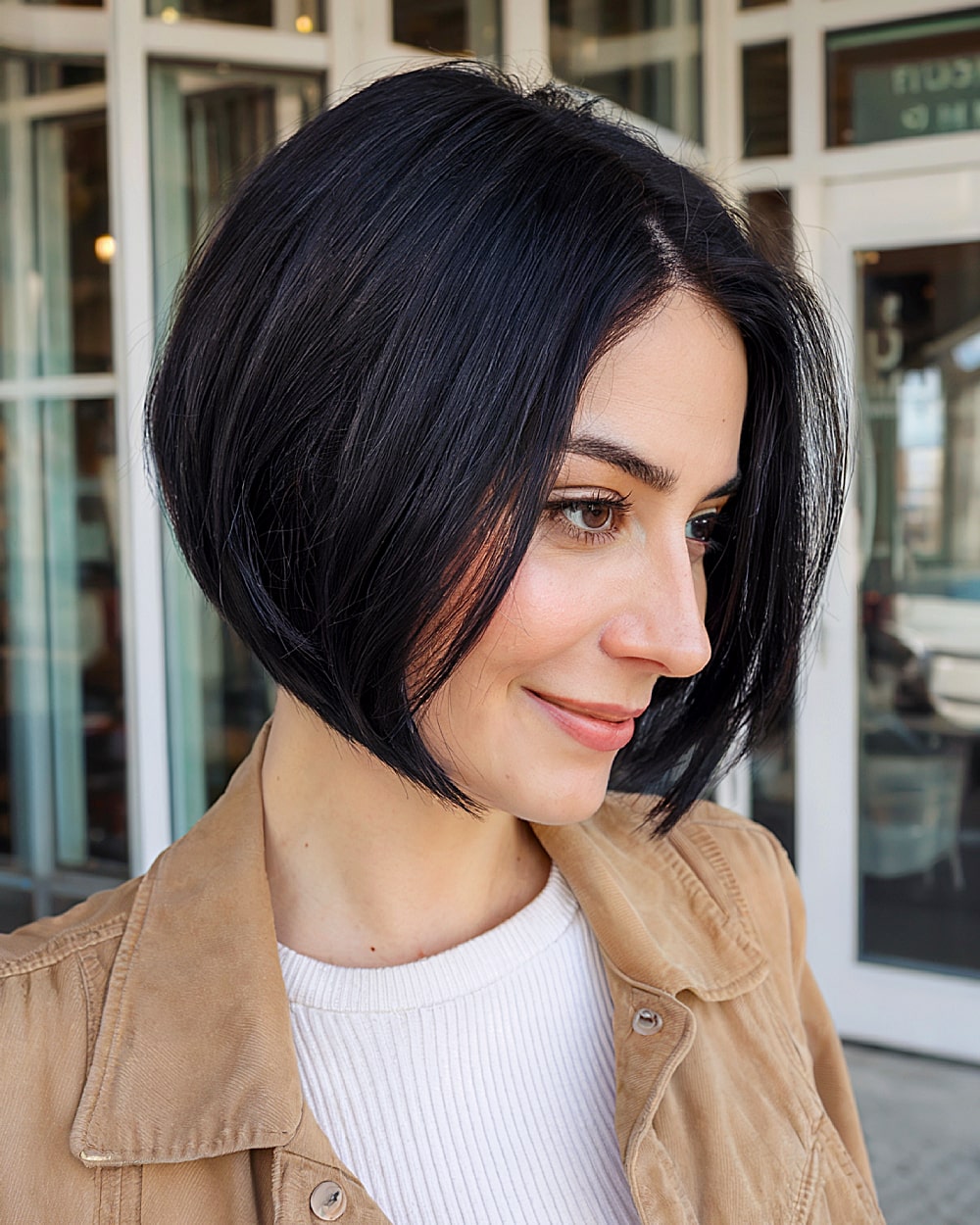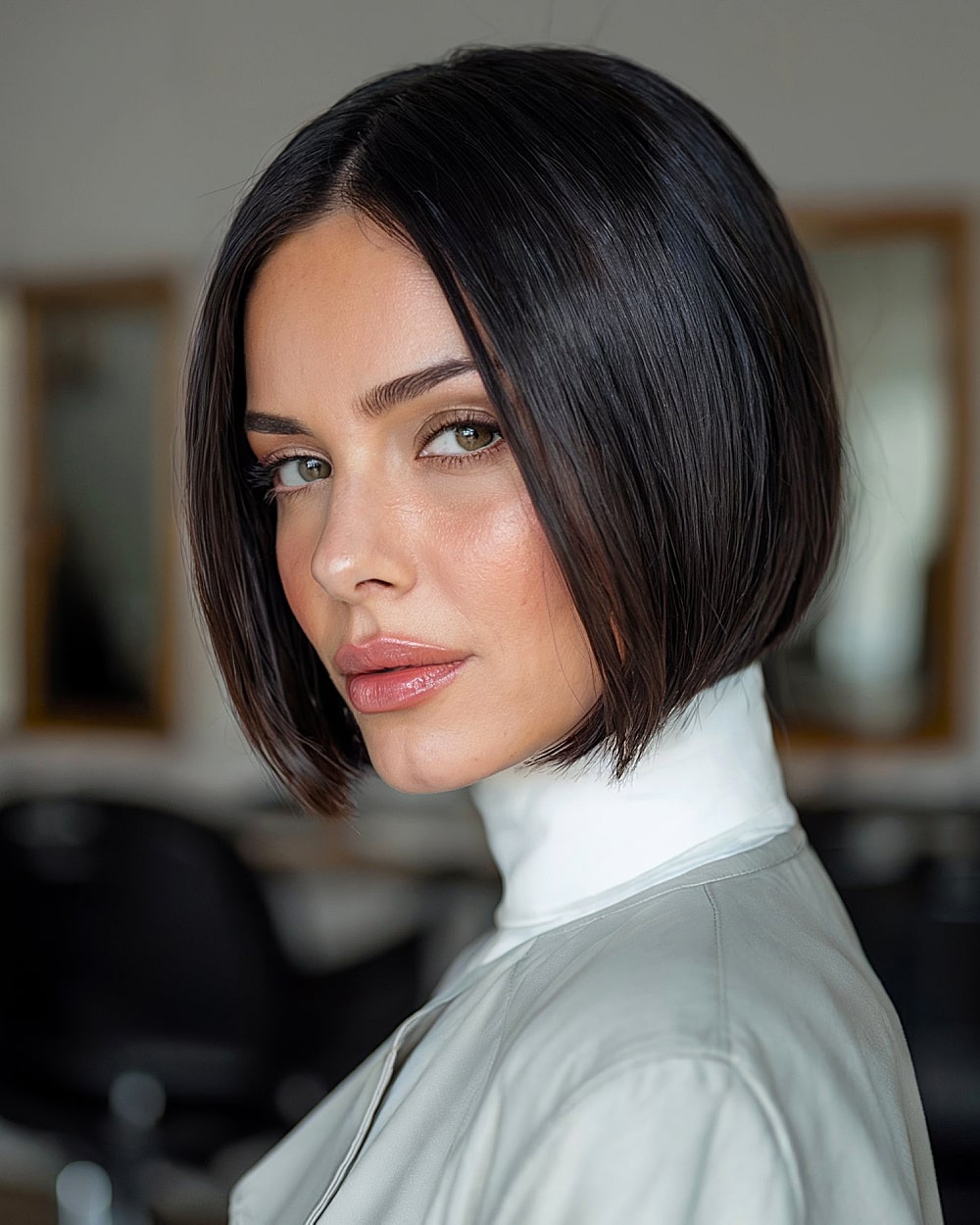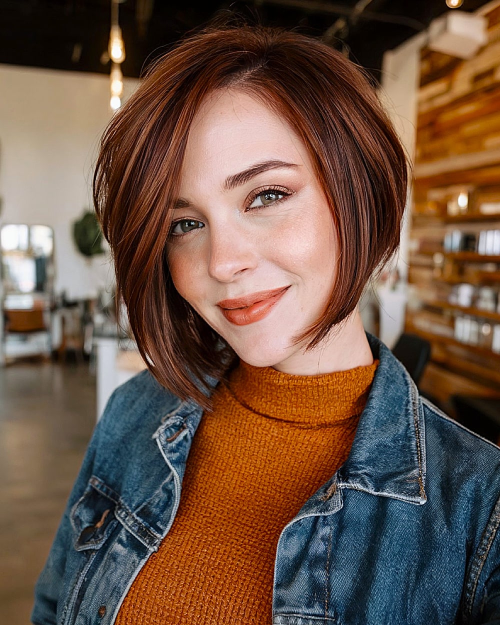 #21 Chin Length Stacked Bob with Volume at the Crown