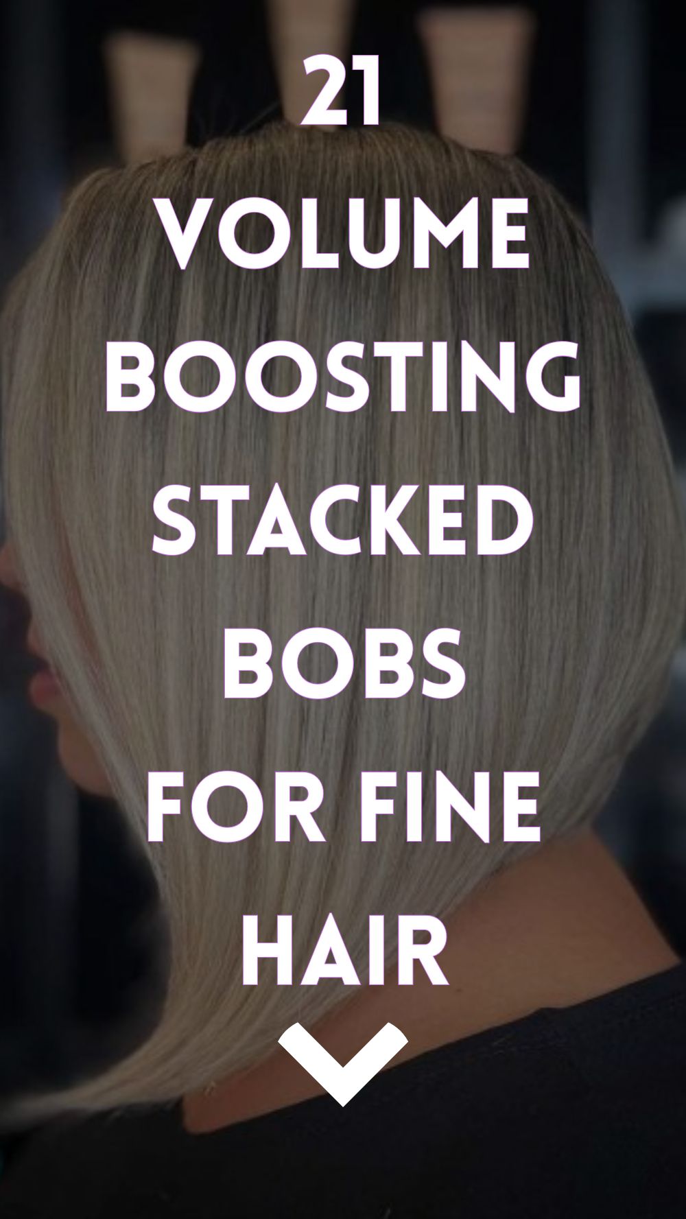 A straight stacked bob on fine hair is a great way to create the illusion of thick hair while keeping the fragile fine hair healthy and thick feeling. Short stacked bob haircuts for thin hair create volume by removing weight from the strand, allowing each strand to bounce up. To add even more volume to fine hair, try using a micro crimper on the first 1-2 inches from the root. Using a micro crimper is less damaging and more long-lasting than backcombing or putting lots of product in.