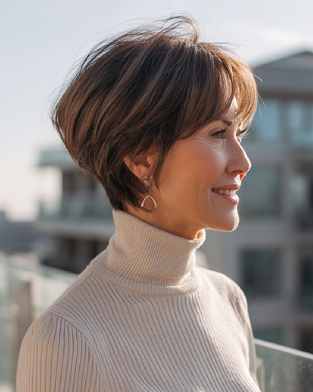 Related: Flattering medium-length layered bobs for 60-year-olds.