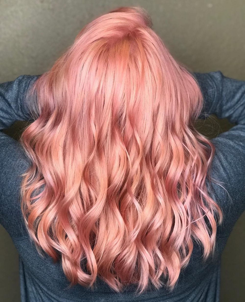 With the waves mixed with the pinky rose gold color, I picture a beautiful mermaid-like Hailey Baldwin Bieber. While doing a fun color, ensure you have fresh ends. This will tell you whether or not your bright pink hair is healthy. Use the color line Goldwell for the best results in achieving rose gold hair. Listen up, pink hair girl, use cold water when washing your hair. Use a viral light pink shampoo and conditioner. The most important key to rocking this color and style is confidence.