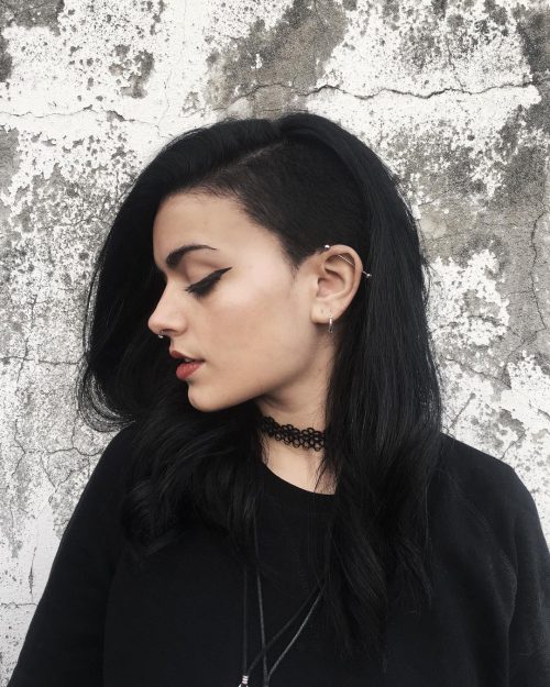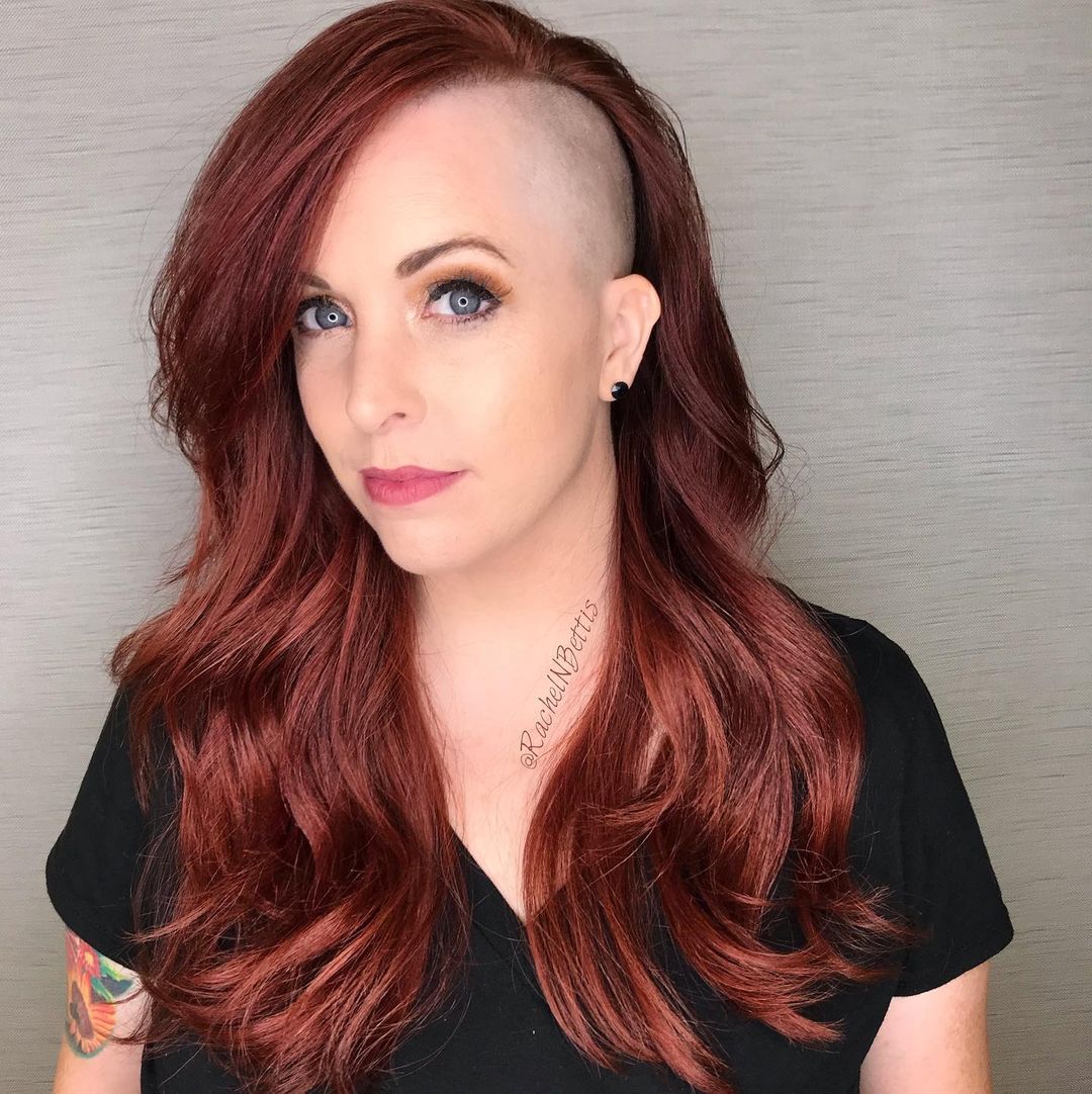 This edgy haircut features buzzed sides. If you’re considering shaving the sides, go for it! If your hair is very thin, then shaved sides on long hair are quite simple to blend. If yours is quite thick, it might be more challenging to style.