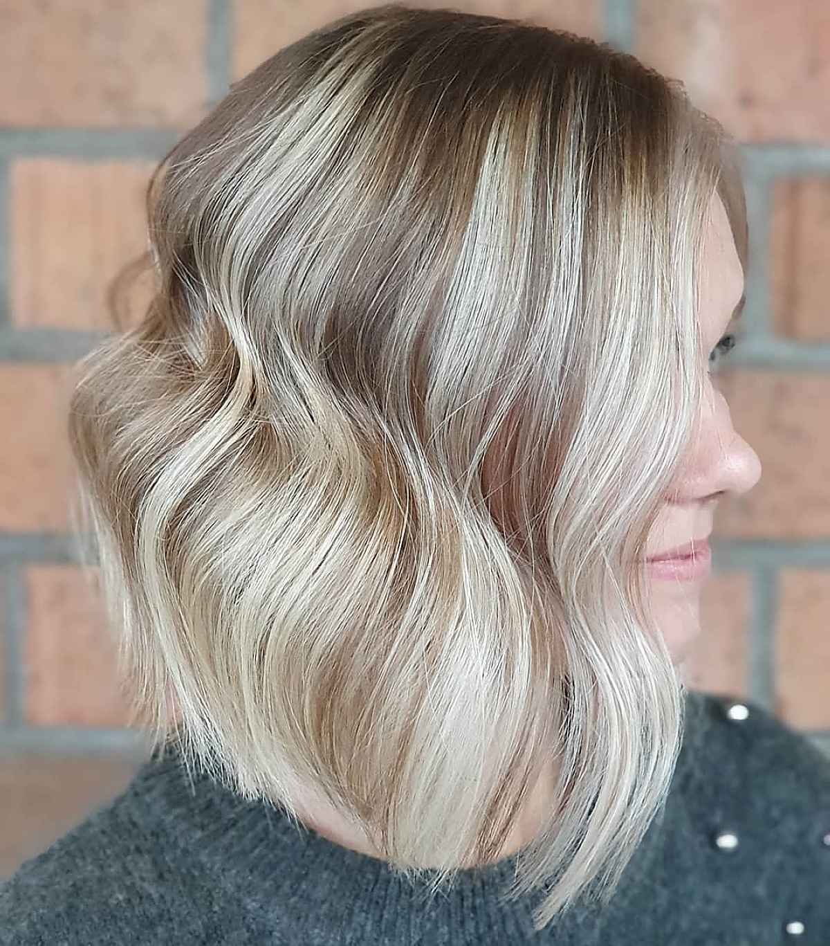 Your mature hair will appreciate the styled inverted bob cut with layered texture. The stacked back transitioning into longer lengths at the front gives the cut a wonderful shape. You’ll want to request layers around the face that appear elegant and swept back. The inverted bob will enhance your hair’s texture, and you’ll adore it.