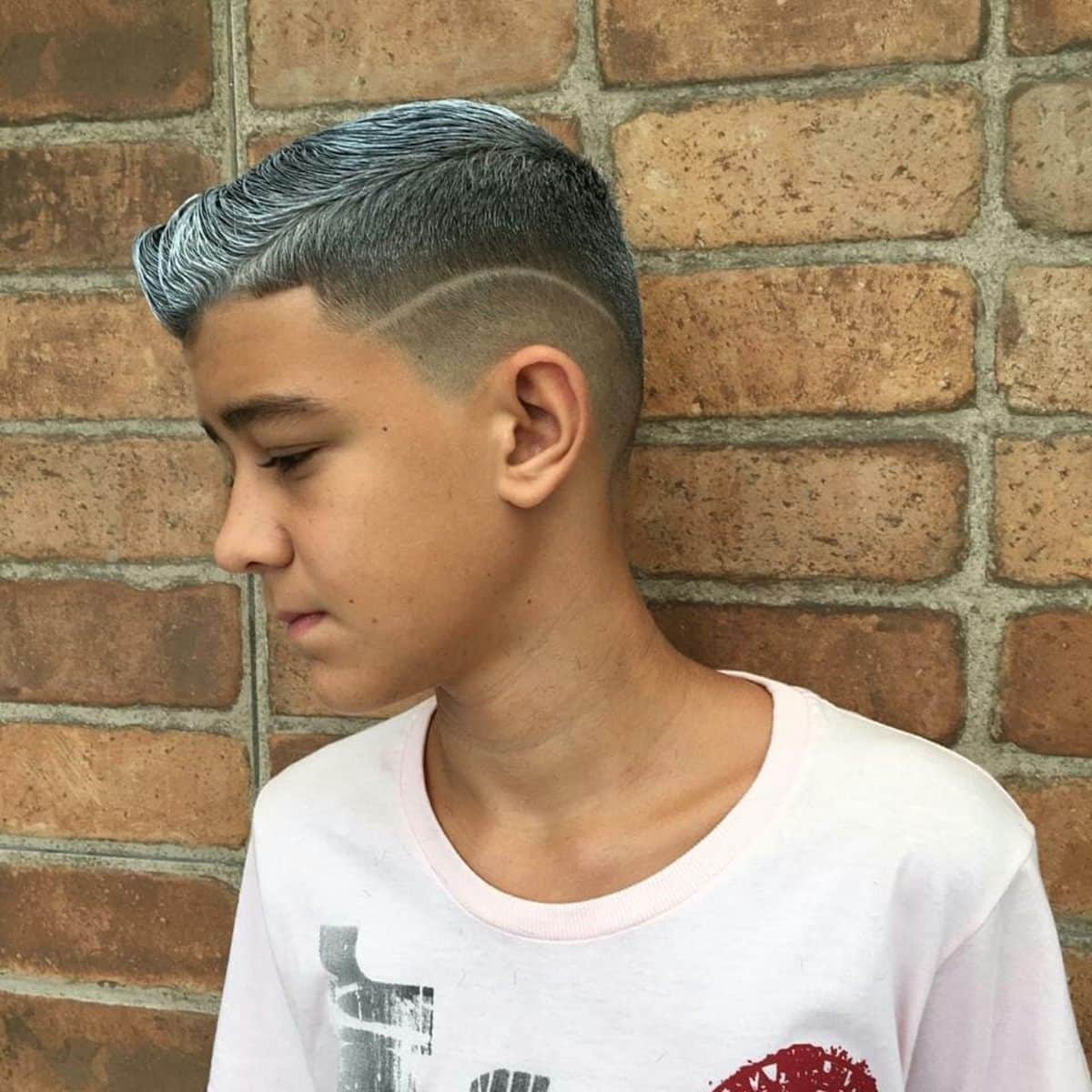 This ultimate boy’s mohawk fade will give your little one the stylish flair he deserves. Though it looks bold, his brown hair will soften the overall look and add balance to the entire style.
