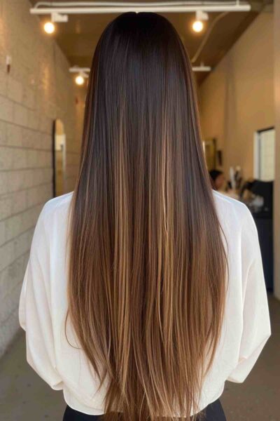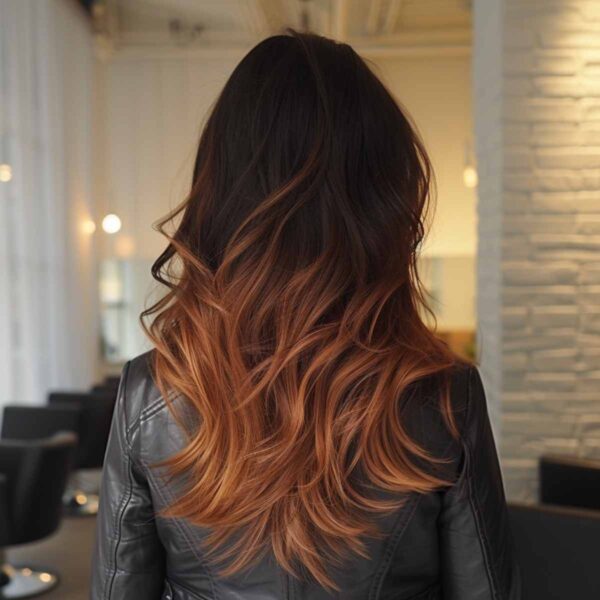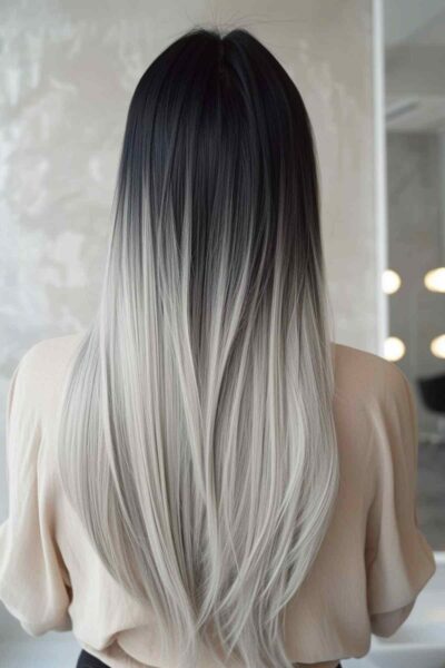 Cookies and cream mixed to perfection! With dark roots transitioning to lighter ends, this technique is a great way to experiment with hair color. Additionally, it’s quite low-maintenance!