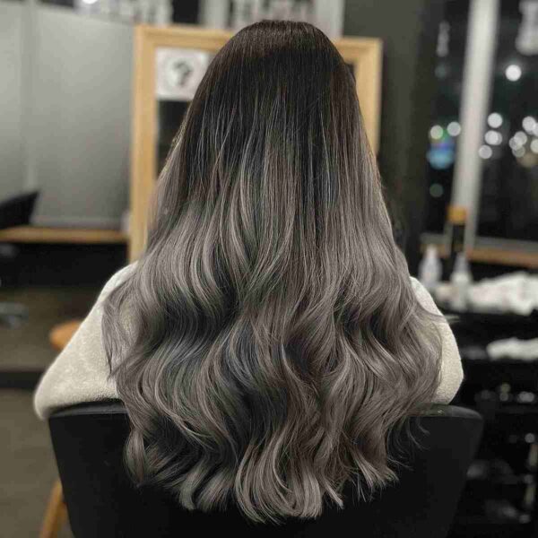 Stylist Niko created hair that is truly Instagram-worthy! The seamless transition from dark to light gray offers stunning color depth.