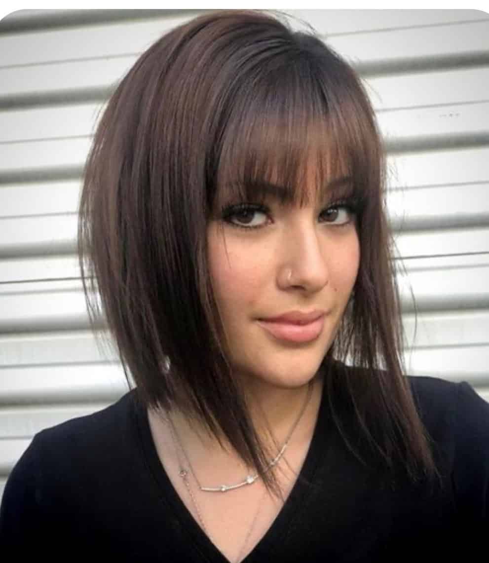 This elegant inverted bob featuring a fringe is ideal for fine, thin hair as it enhances the cut’s outline. When contemplating this stylish haircut, always prioritize your facial features. For example, the neck-length inverted bob can gracefully soften sharp jawlines.