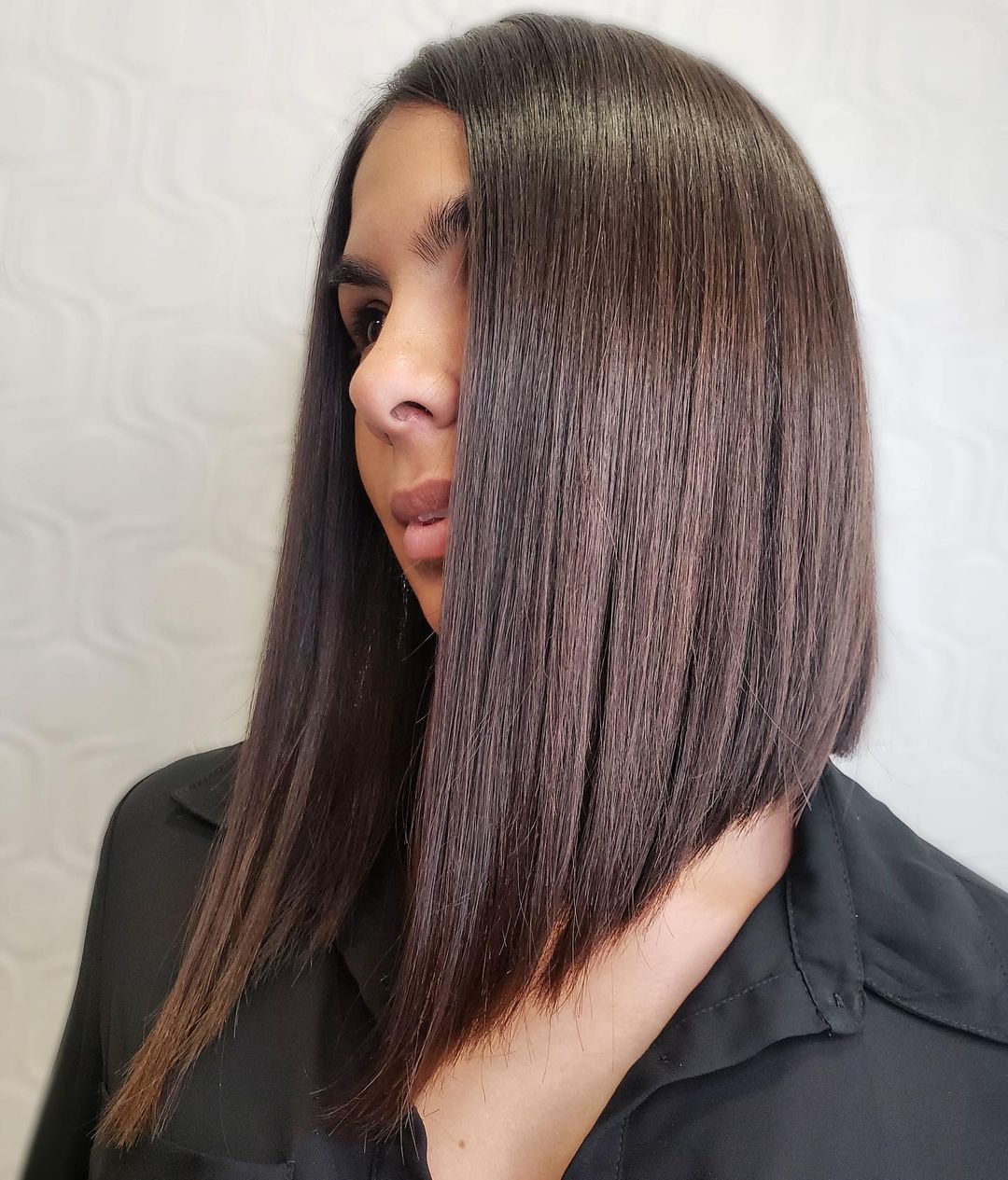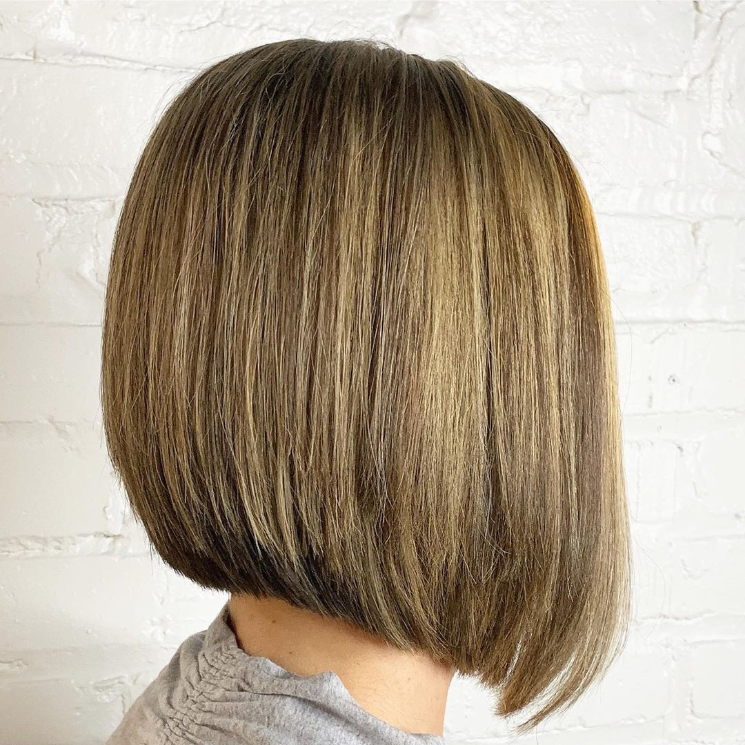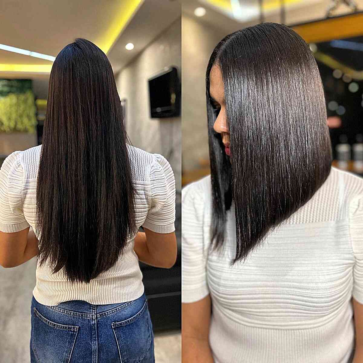 Sleek Medium to Long Inverted Stacked Bob Hairstyle