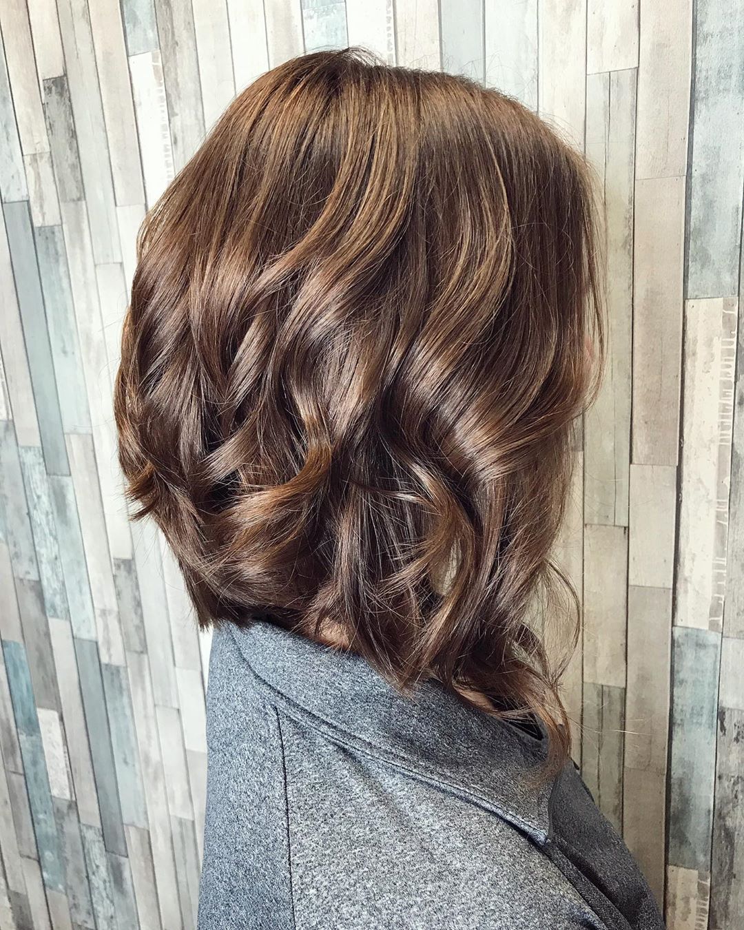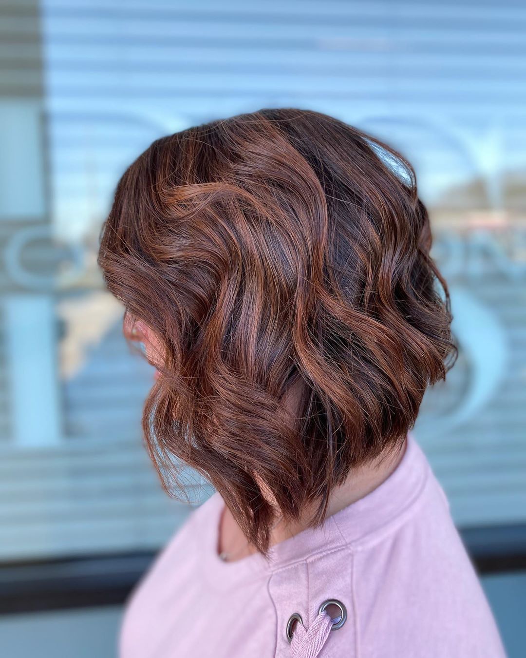 An inverted medium choppy bob produces a more relaxed appearance on the hair, permitting excess weight to be taken off from thicker hair types. Texturizing methods are utilized rather than layering to liberate the hair and provide a more airy sensation. Incorporating some loose waves will complete this style.