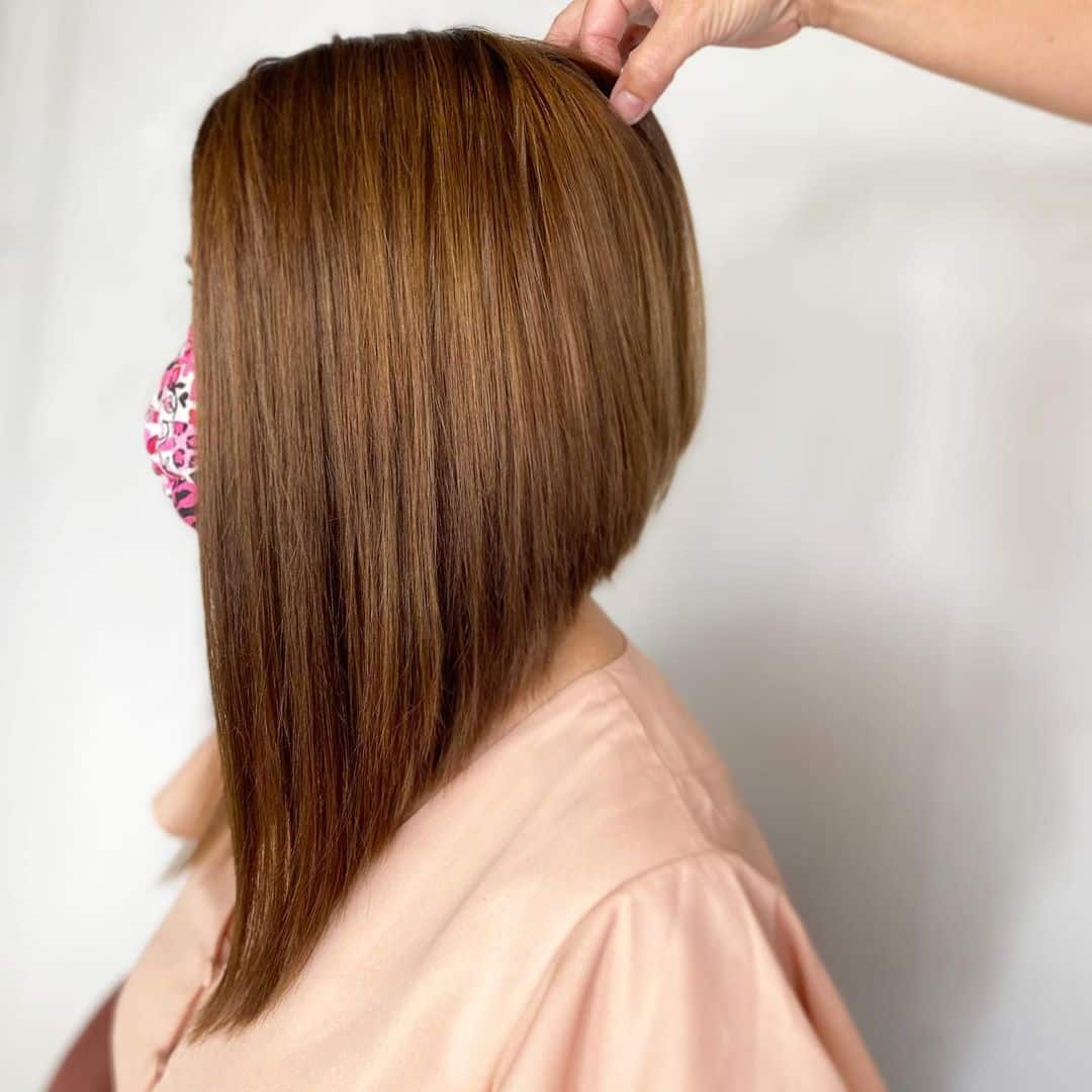 It’s incredibly stylish – featuring a sharp angle from back to front, exuding a beautiful, edgy vibe. You’ll appear picture-perfect no matter what you wear! Additionally, it’s quite practical. The shorter length in the back makes it a fantastic, low-maintenance look. It’s an excellent way to lighten the load of your mane without sacrificing its length! However, if you’re not keen on such a short style, consult with your stylist about a medium to long inverted bob cut instead.