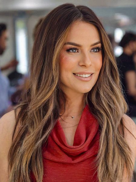 “From my perspective, soft brown hair adorned with highlights and lowlights like this is quite easy to maintain,” she continues. “Typically, women with this natural color schedule their touch-ups every 10-12 weeks. Thus, if you’re mindful of your expenses, this method is an excellent option for enhancing your hair’s dimension without a significant financial impact.”