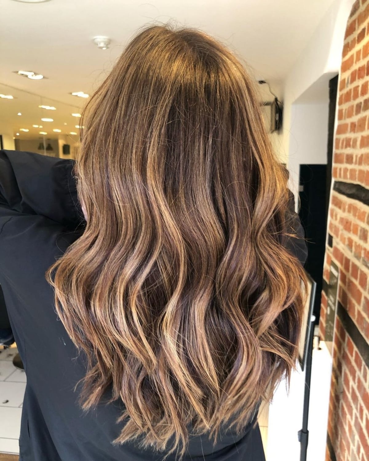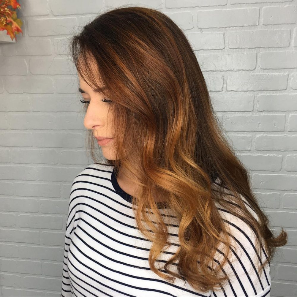These balayage tones are ideal for natural brunettes seeking low-maintenance upkeep. The initial appointment may take a bit longer and cost more, but it will be worth it over time. You’ll easily go 6+ months before needing to lighten your strands again.
