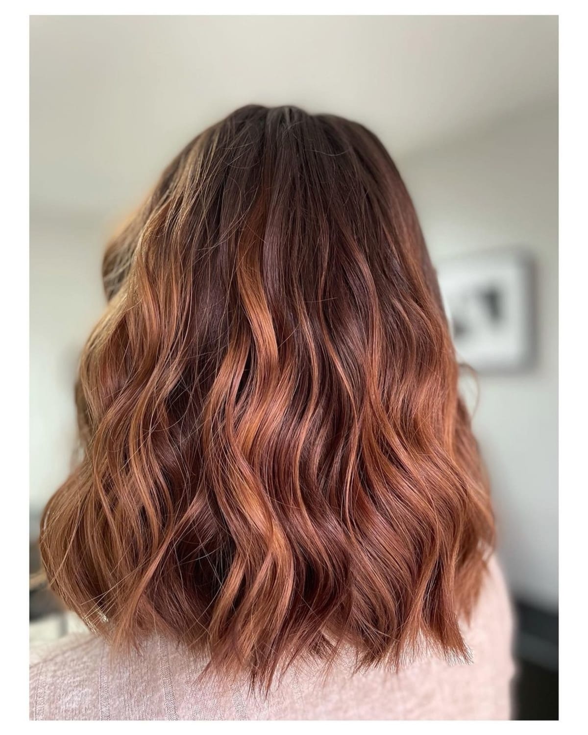 Try chestnut brown locks with soft auburn accents to elevate your look. The auburn accents on this rich chestnut brown base color will definitely catch attention! Enjoy this vibrant hue throughout the year.