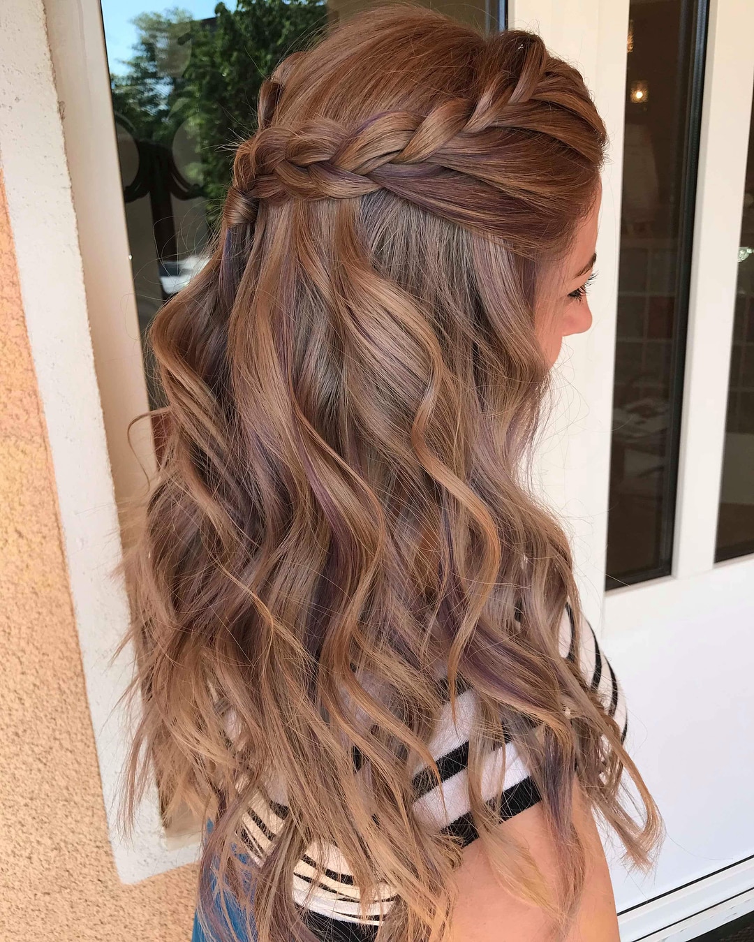 These delicate sun-kissed strands provide a lovely contrast to soft chestnut hair. Such hues enhance the brightness of headpieces. Additionally, fine blonde highlights can be added near the face for a flattering and slimming effect.