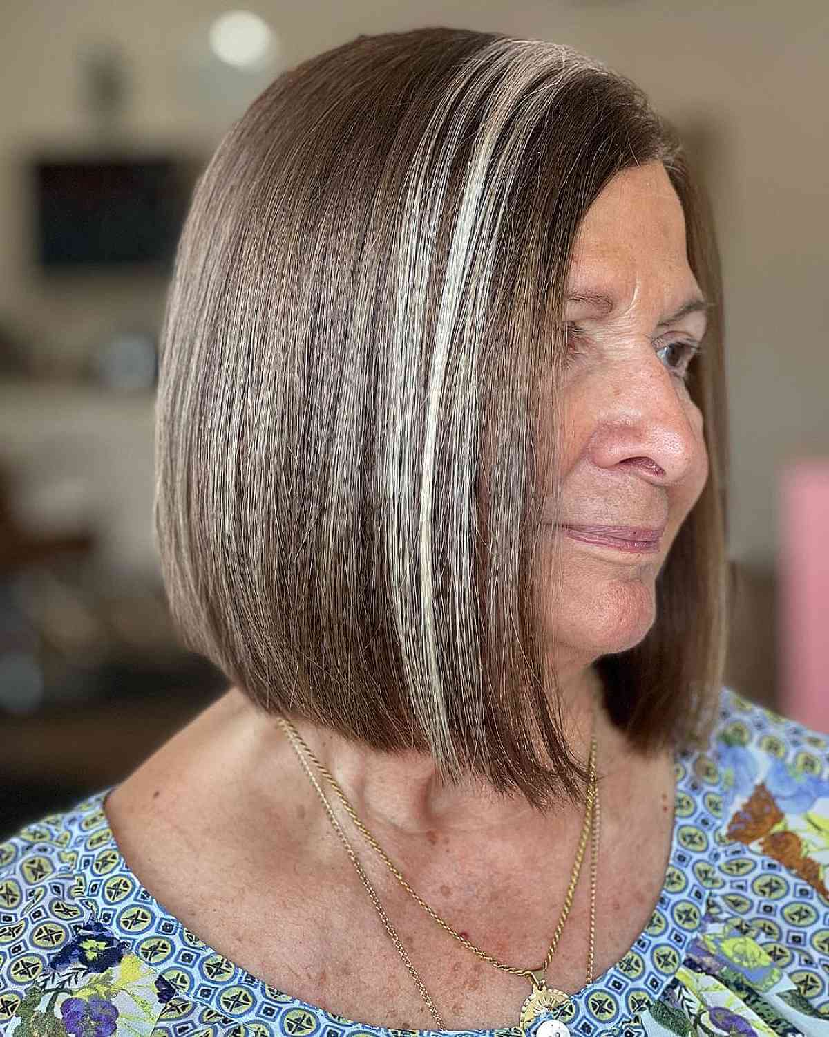 Transform your hair with a warm brown blunt cut. Subtle highlights add depth and vibrancy to enliven your brown locks. Opt for a natural look with just a few highlights to enhance your color. Depending on your complexion, various shades of blonde can complement your natural brown hair, such as golden or ash tones.