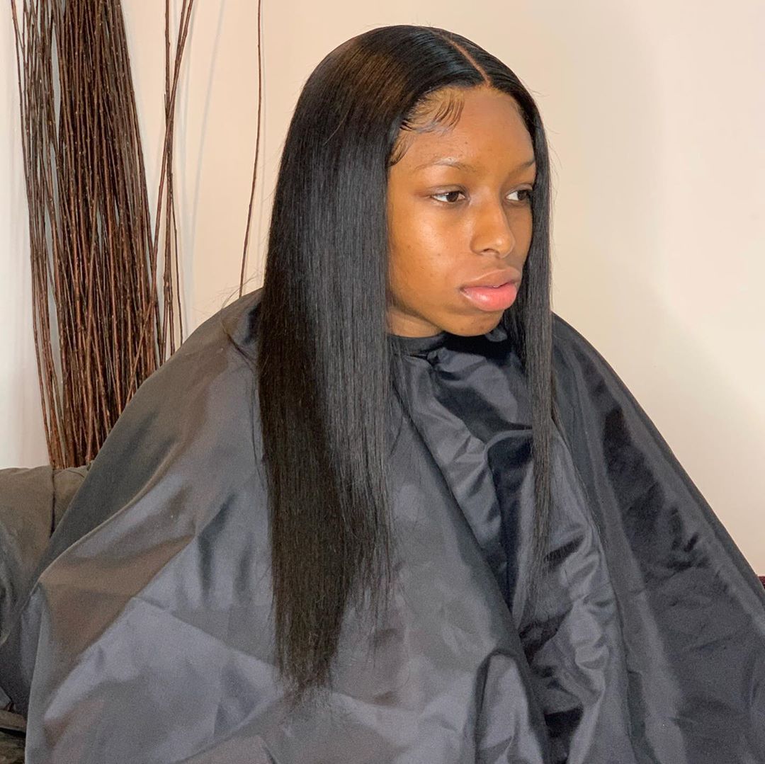This sew-in style with closure looks authentic and refined. The middle-parted design and expertly styled edges enhance the overall appearance beautifully.