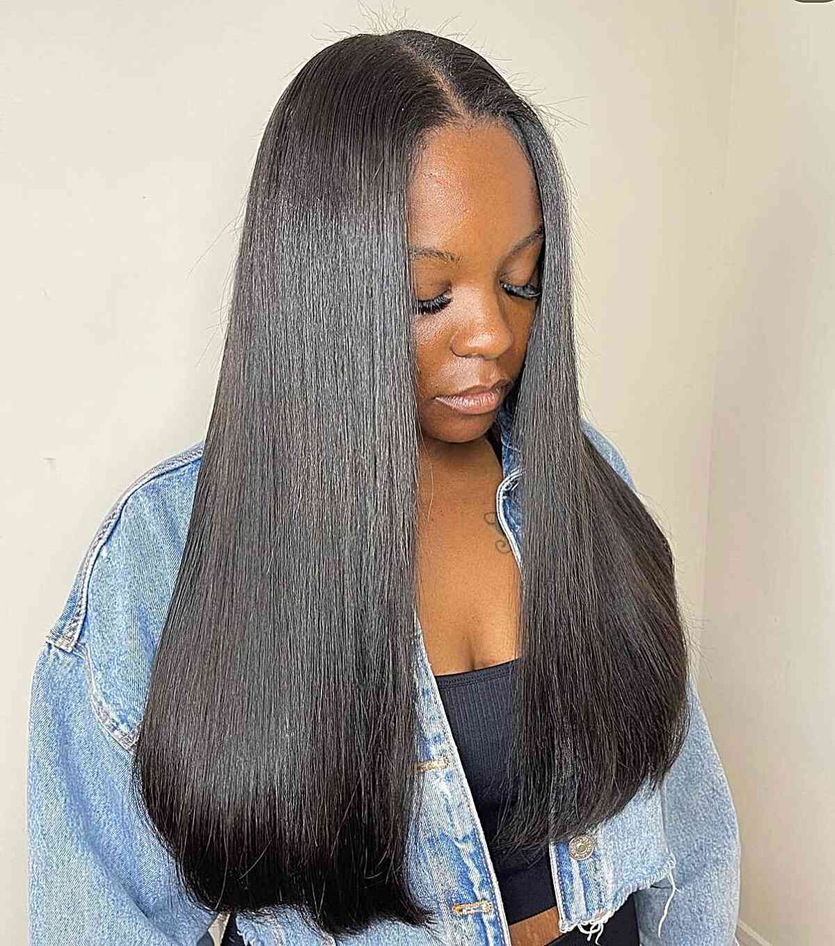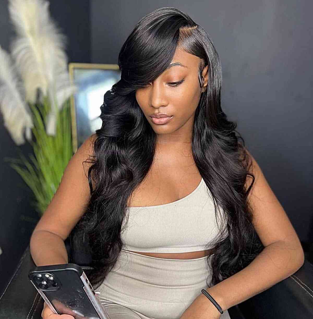 If you’ve sported a natural black or curly hairstyle for years, it’s time for a change. You can still shine like a star with elegant side-parted sew-in hairstyles of significant length.
