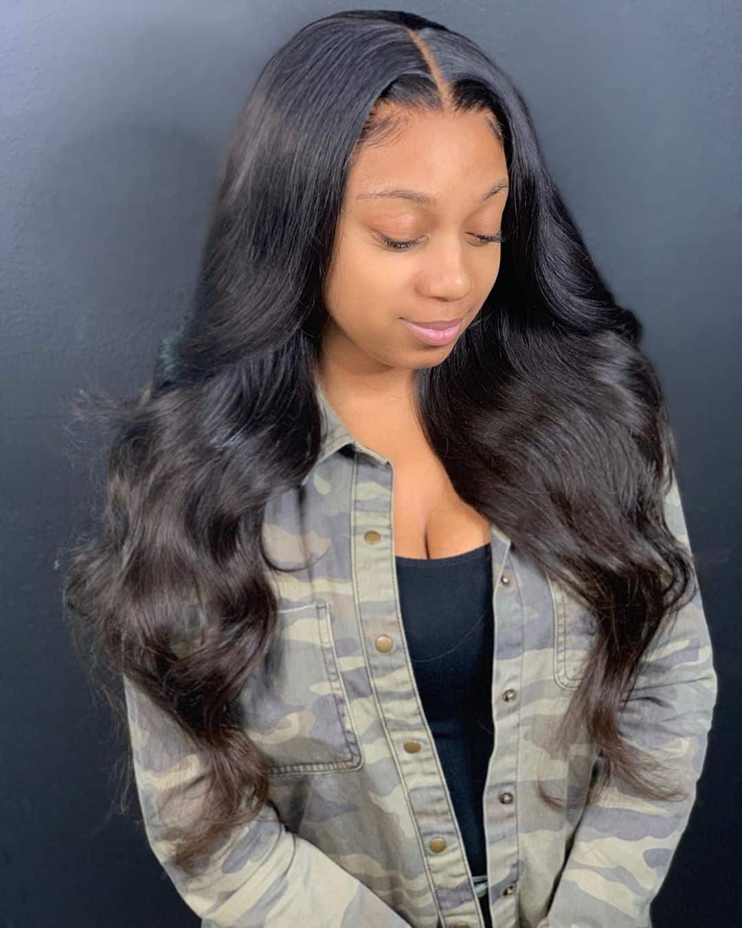 Why choose this hairstyle? It’s long, full of volume, and most importantly, it’s sophisticated. With its naturally gorgeous appeal, this Brazilian body wave weave is definitely worth considering!