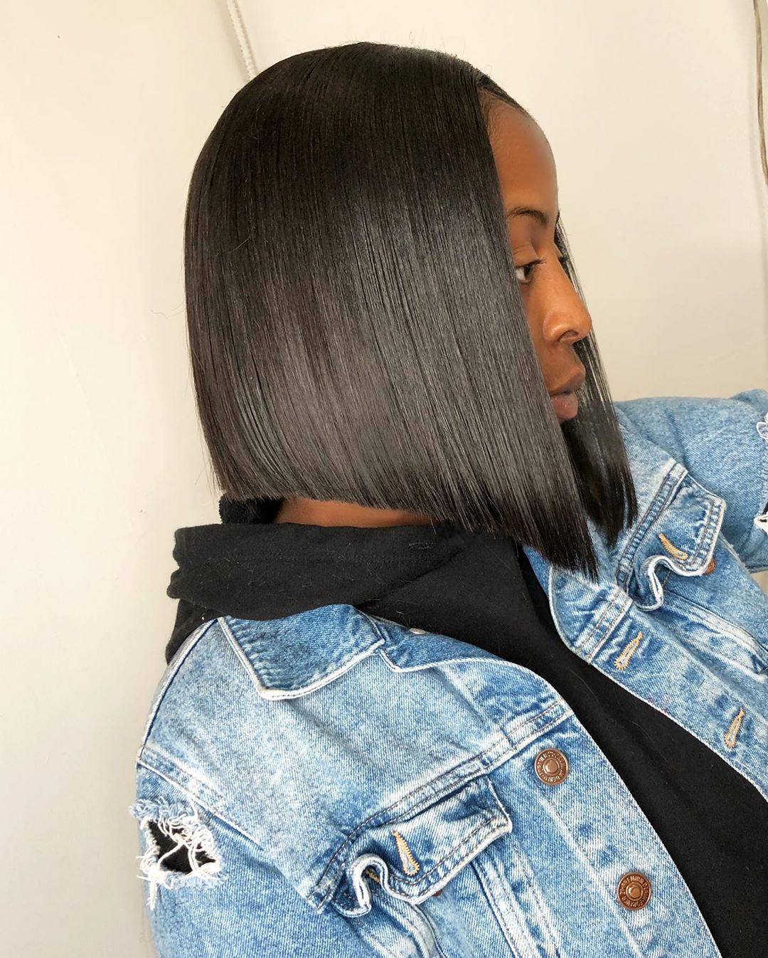 The thing about a bob haircut is it enhances the elegance of a black mane. This stylish medium-length swing bob is a gem you can wear and enjoy under the sun. This cut is an A-line beveled bob. It’s sleek and classic, yet the strong slope of the angle adds a bit of edginess and creates a lot of movement. This medium swing bob cut for women can be tailored for any hair density or head shape. Another great thing about swing bobs, or any bob, is their versatility. Try using a curling wand or wash and wear with a texture spray. To maintain this shape, you will need a trim every 6 weeks. A precision bob will always grow out with ease. It can also be squared off as it grows, or it could mean you’re ready for a change.