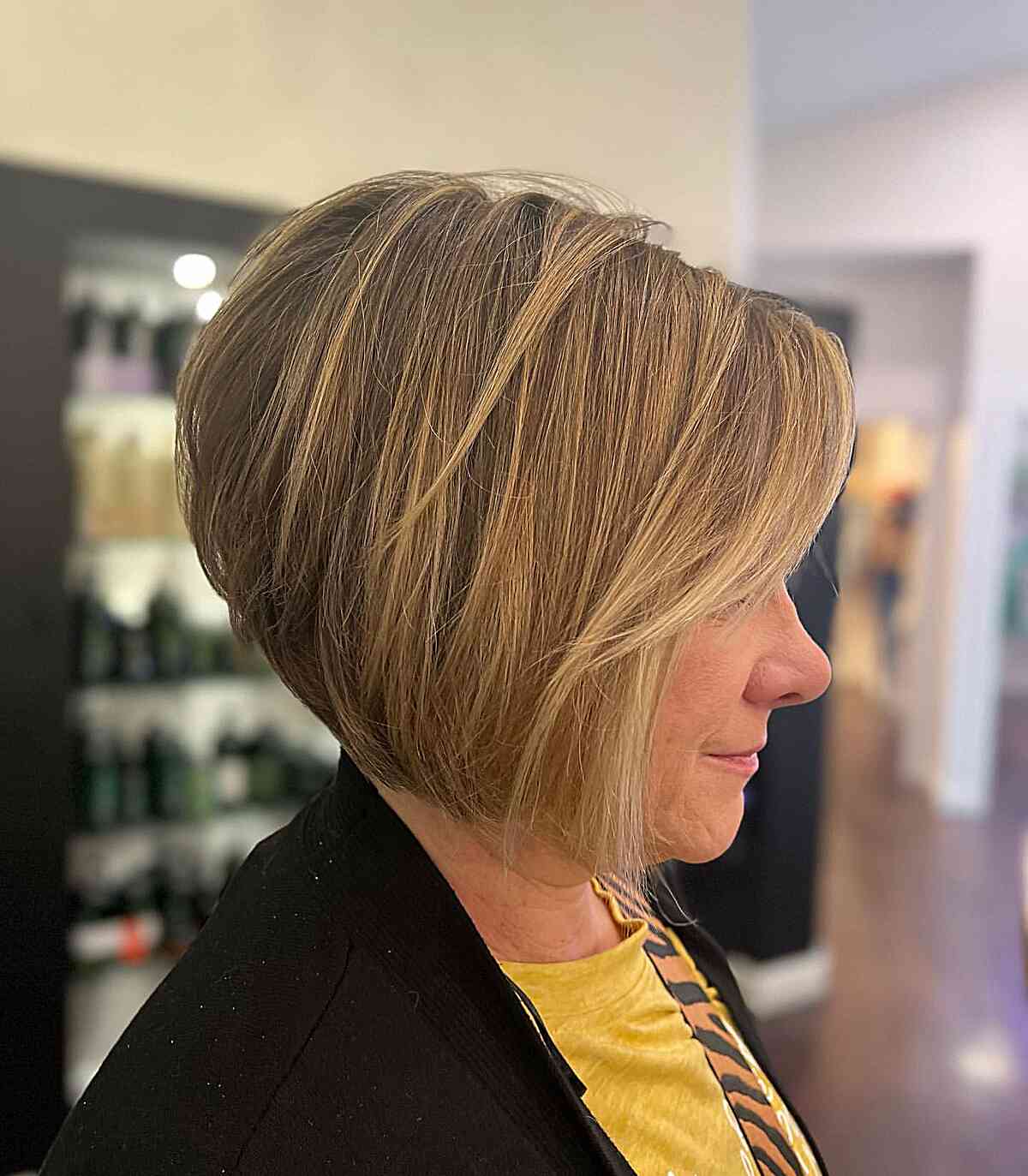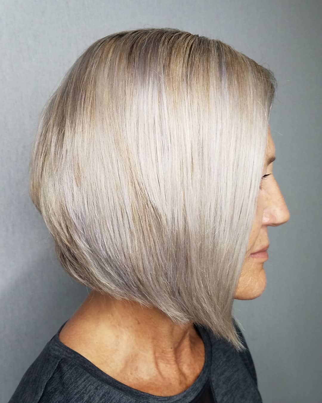 This beautiful blonde swing bob is ideal for women in their 50s who are actively working and seeking a contemporary look. Swing bob haircuts become increasingly attractive when designed with soft layers to enhance natural movement.