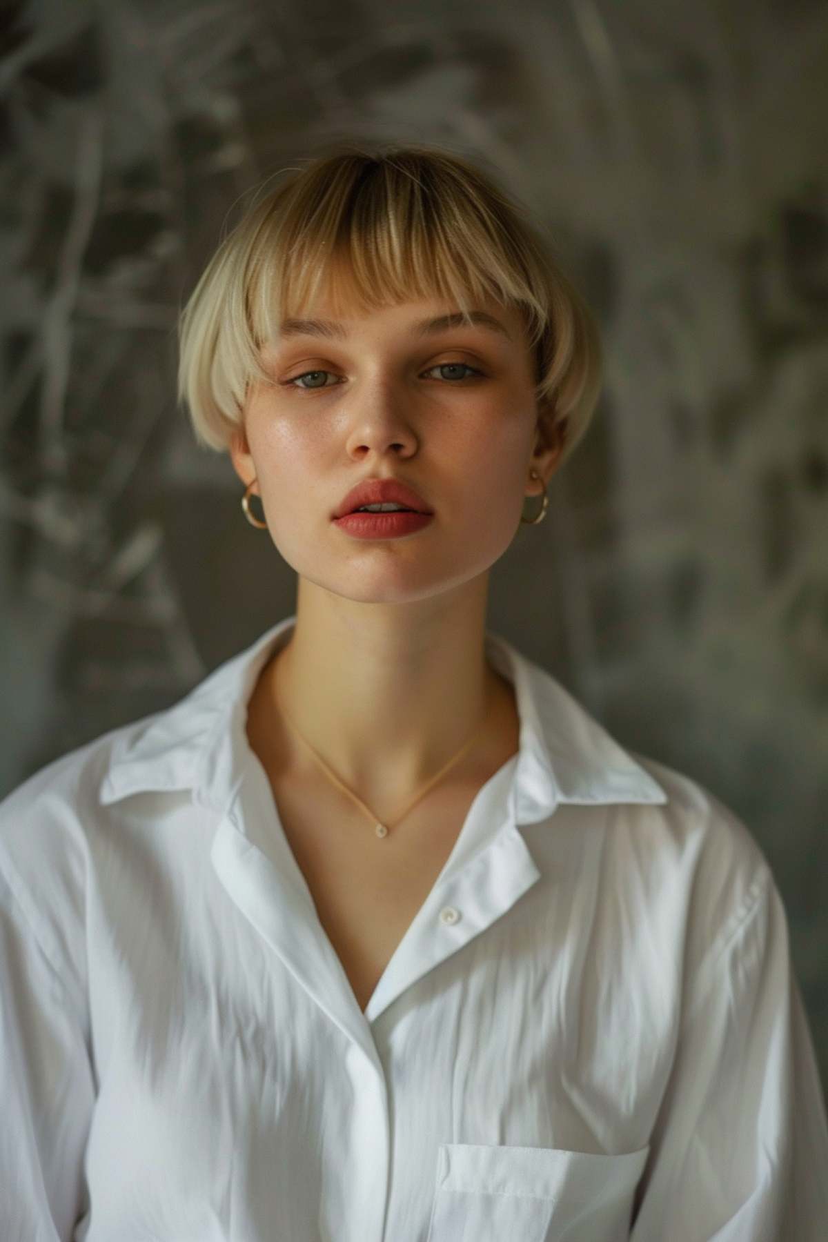 The contemporary blonde bowl haircut is celebrated for its simplicity and overall length. Often called a mushroom cut, the bowl cut has made a resurgence in today’s styles. Your stylist can enhance the look with platinum blonde color and precise cutting techniques.
