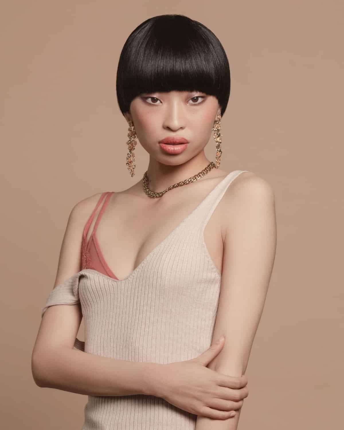 Consider an Asian bowl cut for women with a round face if you desire a chic and polished look. The design contours the head from all sides, beautifully framing the face. The rounded silhouette of a bowl cut mitigates sharper angular features.