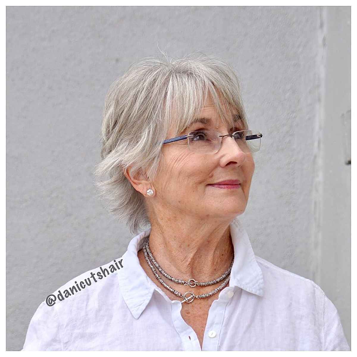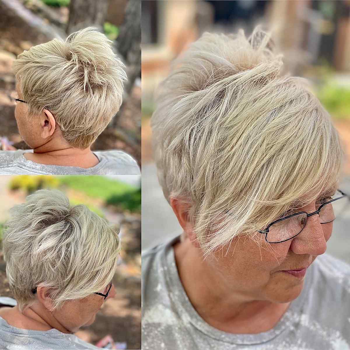 A textured pixie for older women with glasses is a trendy style for mature ladies with a touch of flair. If you’re feeling less vibrant with your overall look while wearing spectacles, a textured pixie cut is just what you need. It highlights your frames in a way that enhances your face.