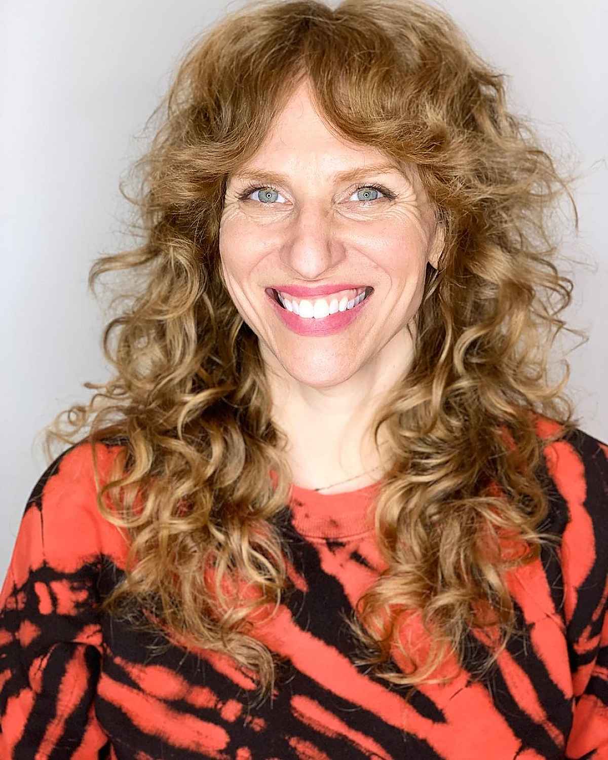 This luxurious wavy hairstyle with layered feathers is perfect for medium to thick, naturally wavy hair. Heavy layering and long curtain bangs are the secret to contemporary feathering styles. Don’t forget to apply a bit of curl cream to define deep curls and create ample bounce.
