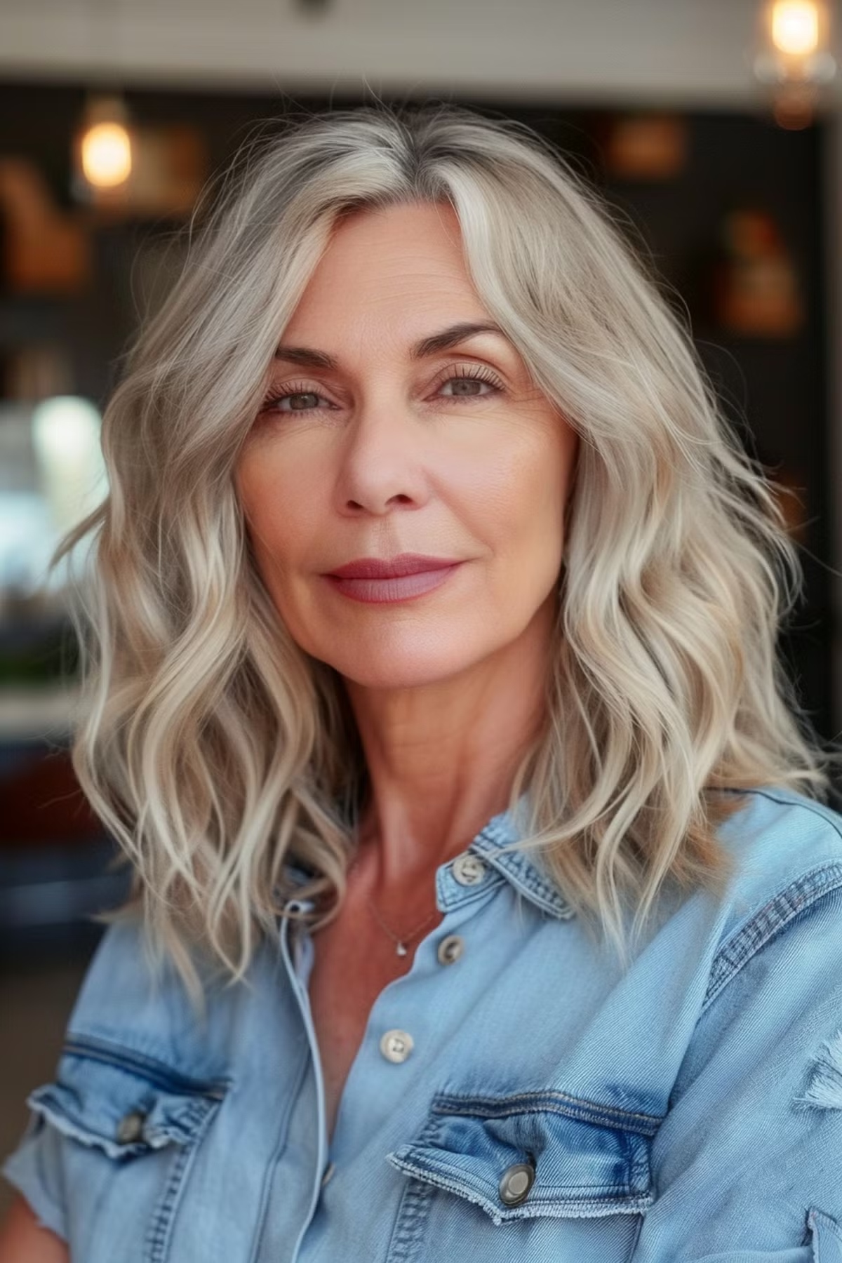 A chic shaggy bob haircut with a vibrant hair shade is an effortless and elegant way to look a decade younger. Blow-dry your gray hair upside down with a volumizing hairspray.