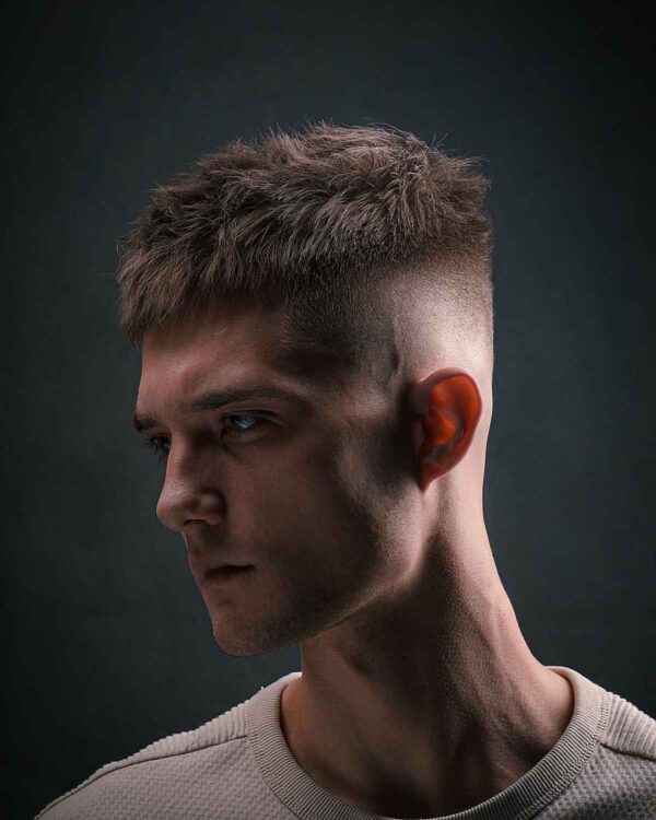 Timeless styles endure. They can be updated to infuse your unique flair. We’ve introduced plenty of texture into the top of this stylish French crop for a tousled appearance. At the temple line, we’ve maintained a substantial blend. This assists in creating a smooth transition and provides more space for a taper. I would recommend using a quality styling powder for a natural look.