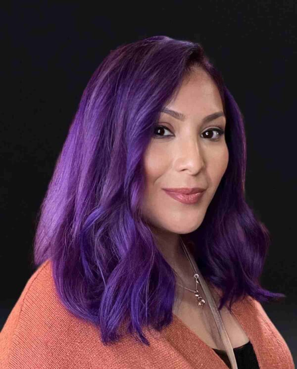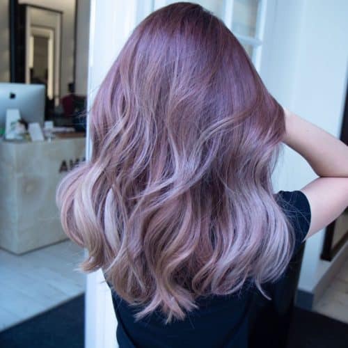 The color line used to achieve this deep lavender purple hair was Matrix ColorSync Watercolors. It was applied to the hair and pre-lightened to a pale blond. It’s truly the ideal smokey lavender/mauve. Don’t hesitate to try a vibrant color like this rich purple tone. These are in, and it’s all a matter of personal preference. If you have lavender hair ideas, then that’s all that matters!