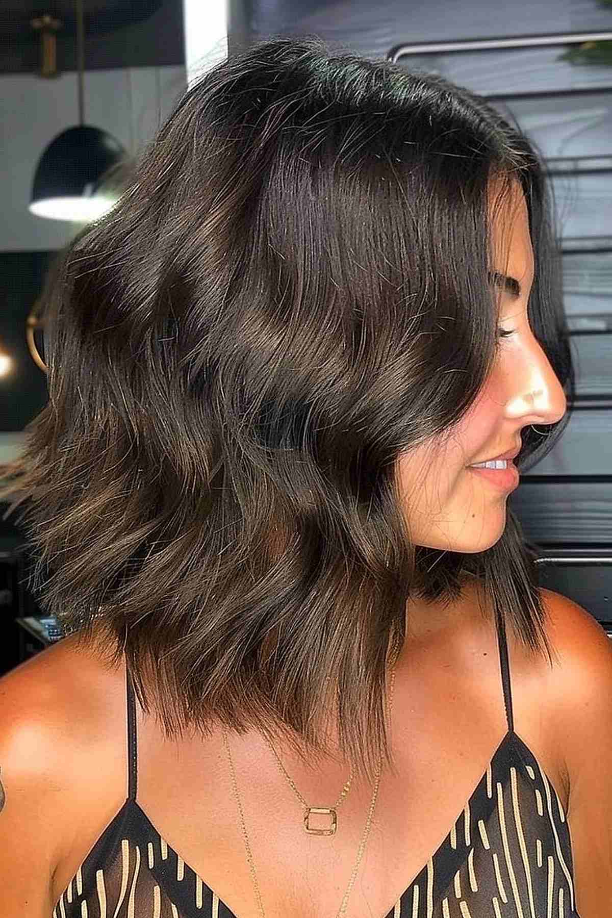 Stylish Long Choppy Bob for Dark, Wavy Hair