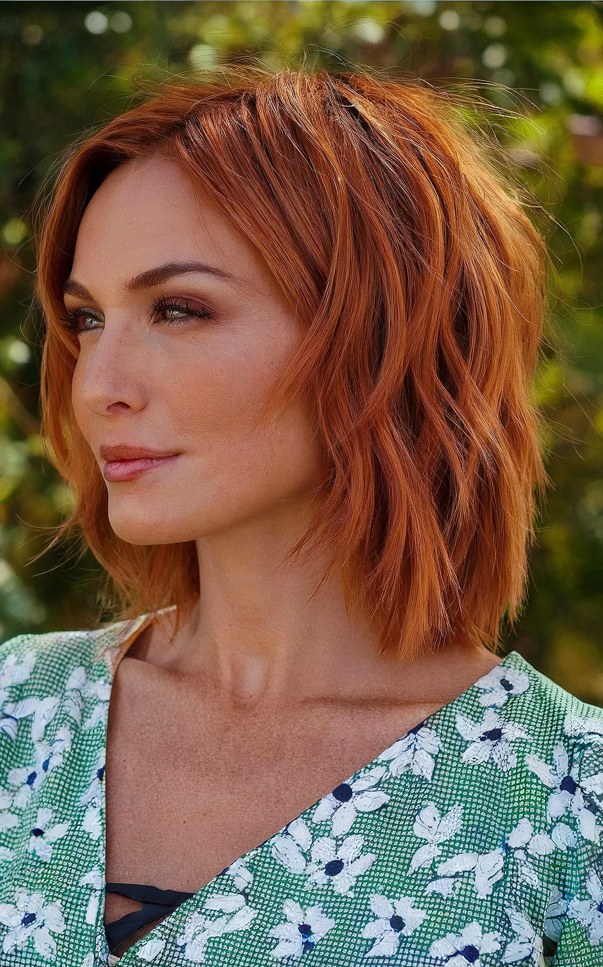 Radiant Copper Choppy Lob with a Side Part