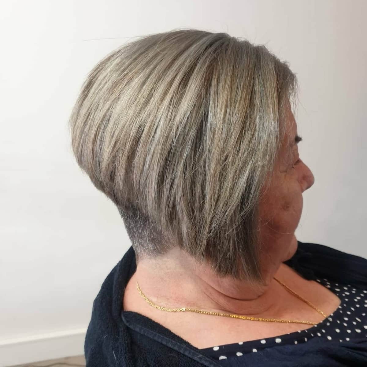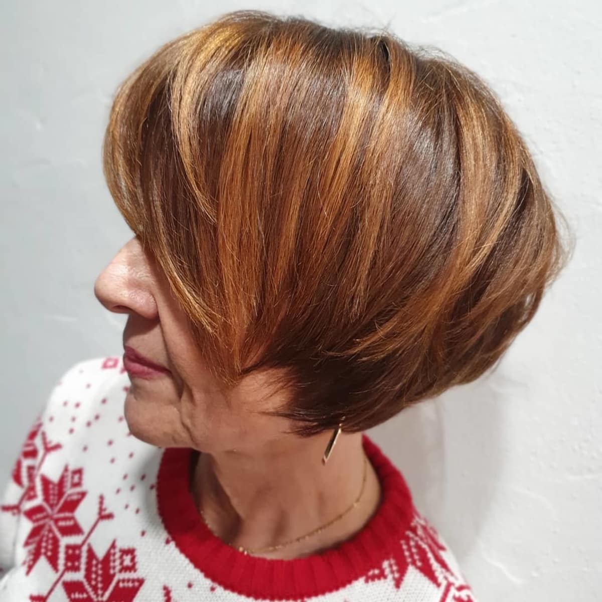 The ideal short inverted bob for older ladies with the finest hair provides plenty of movement. The goal is to style the hair with gentle waves and texture, avoiding a flat appearance. If the hair features some blonde highlights, this style enhances the dimension! In conclusion—this trend delivers volume and a youthful appearance.
