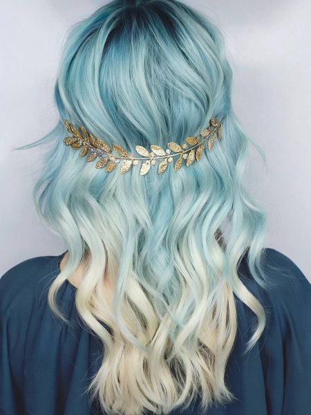 Ombre blue shades require significant maintenance. They can shift/fade to green based on the stylist’s technique and your hair’s condition. Be prepared for the upkeep, which can be labor-intensive and costly, but truly rewarding when you achieve this whimsical mermaid hair!