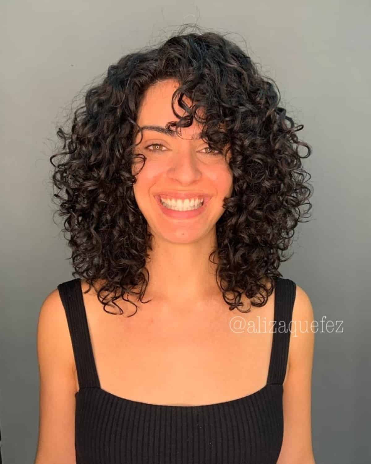 👉 See more stylish curly hairstyles with bangs.