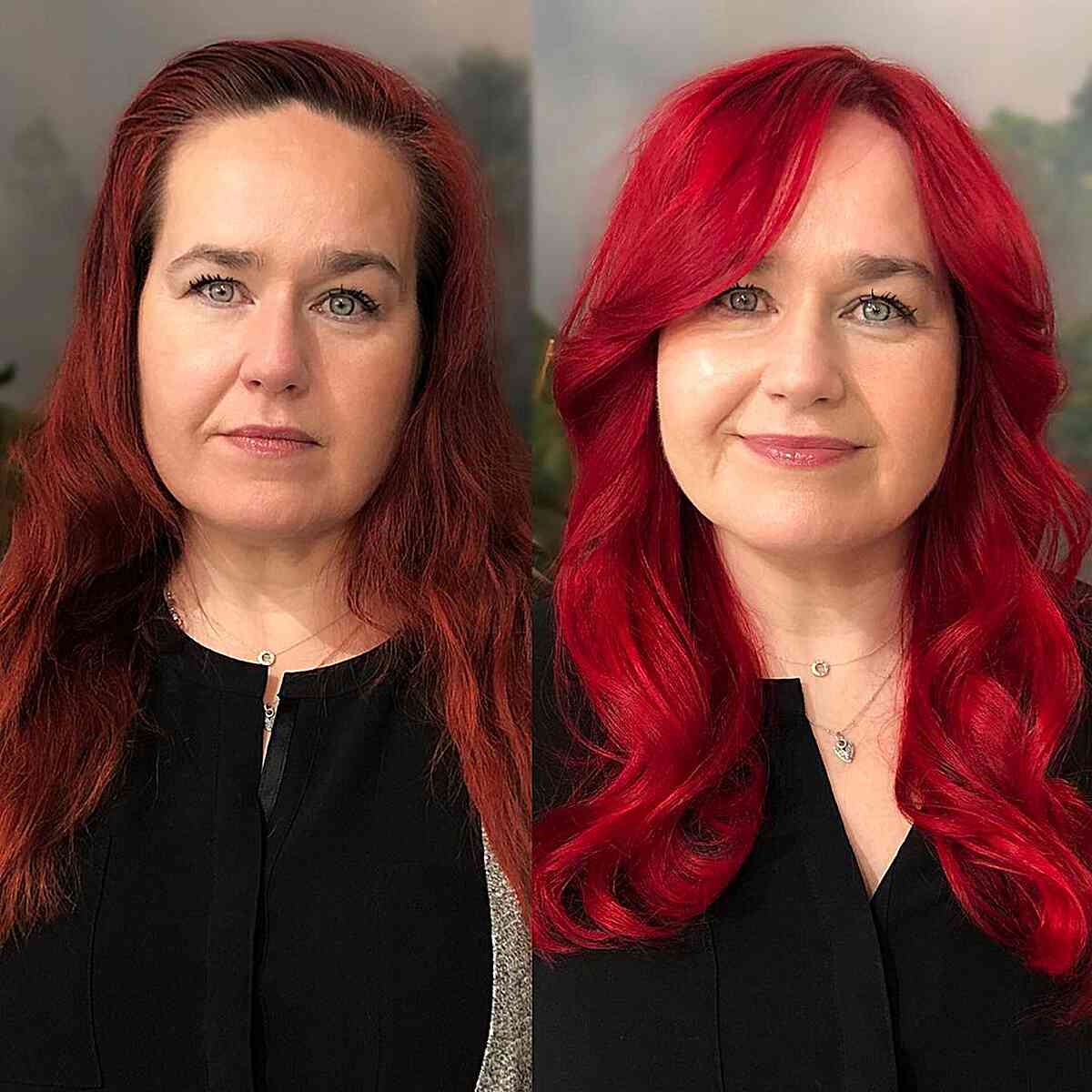 Wavy Red Hair in Mid-Length with Gentle Fringe