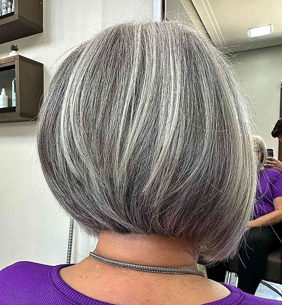 A bob haircut is an excellent choice for salt and pepper hair, as it beautifully highlights the hues. The stacked bob haircut allows you to showcase your grays effectively.